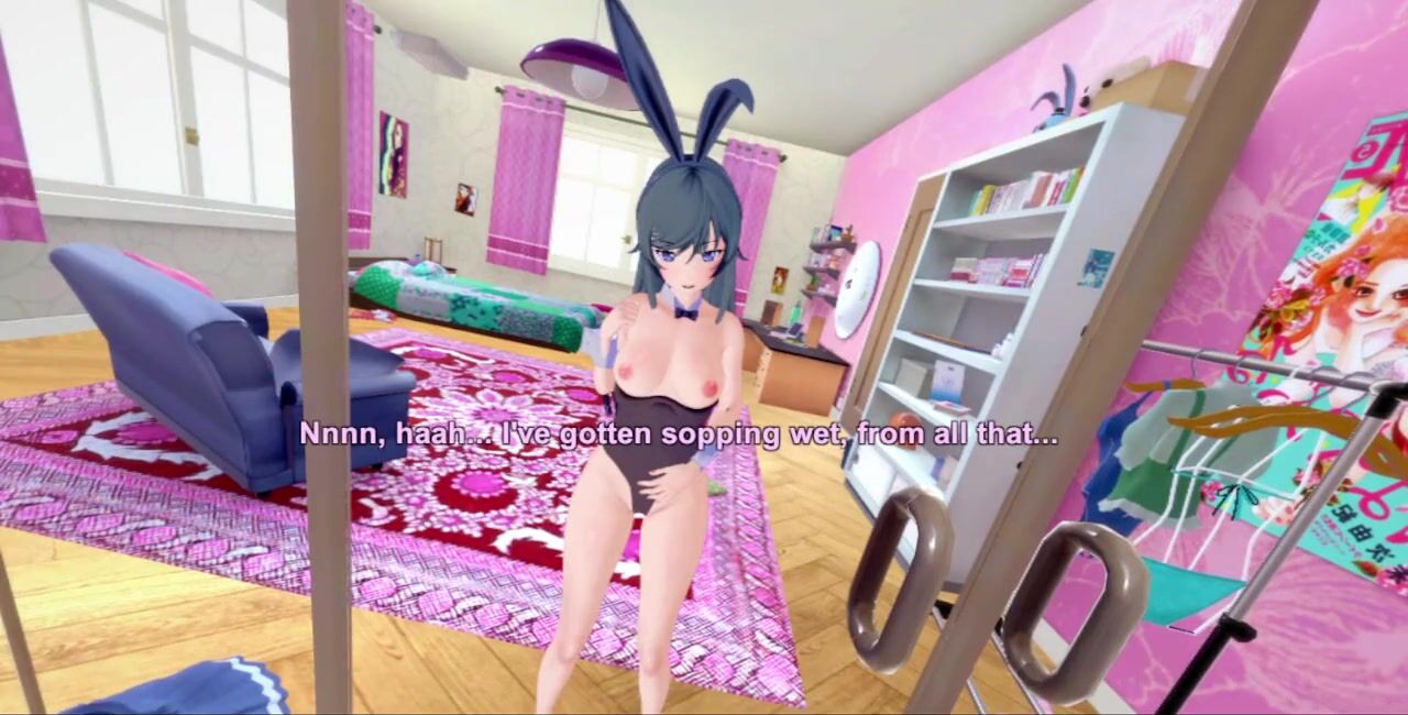 3D/Anime/Hentai, Bunny Girl Senpai: Adult Mai Sakurajima Solo Masturbation In The Mirror (POV)