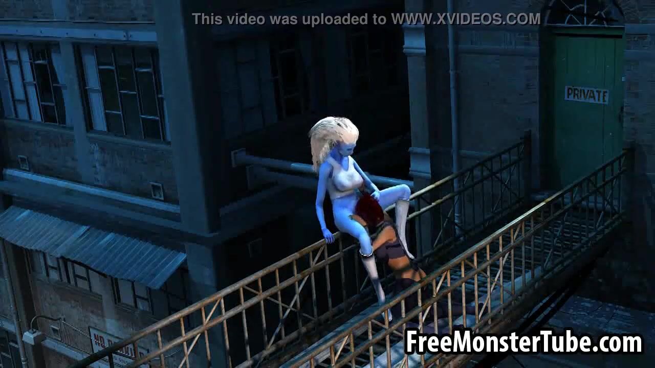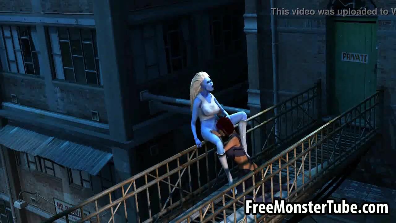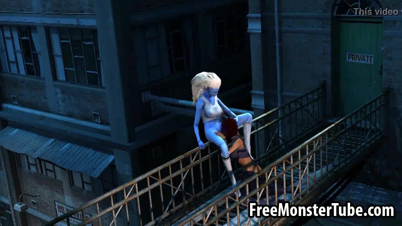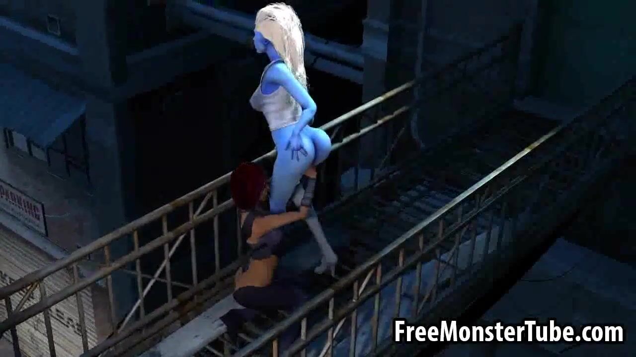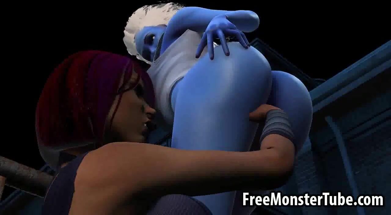 3D cartoon blue lesbian babe getting licked outdoors