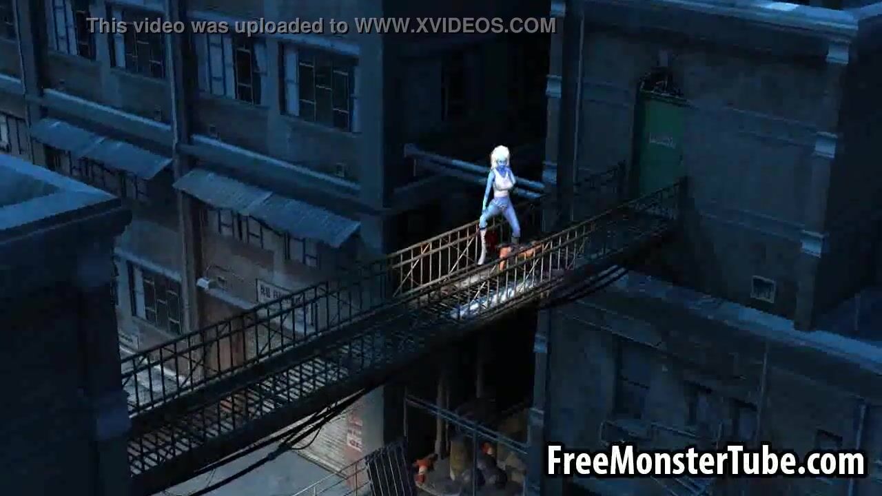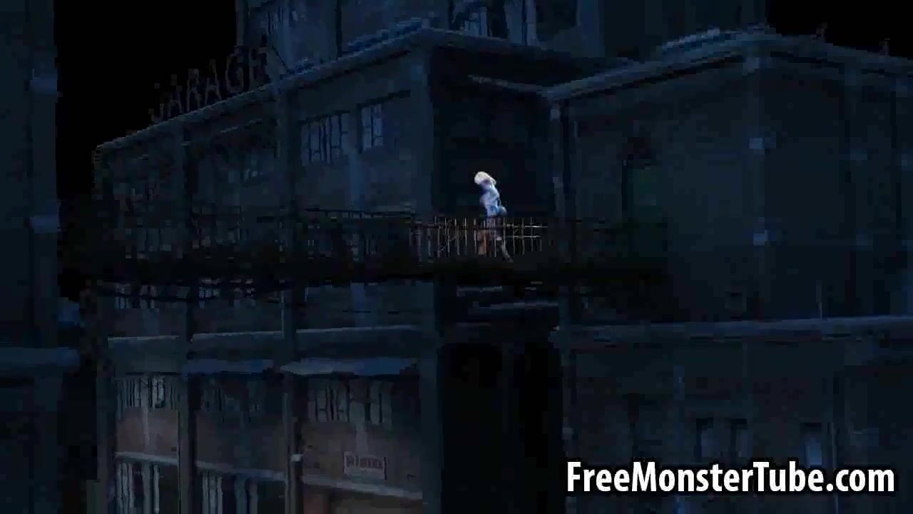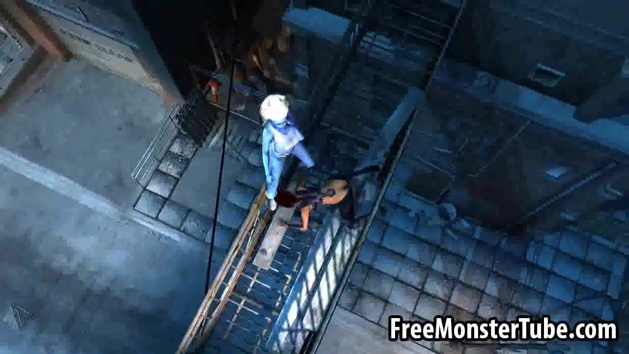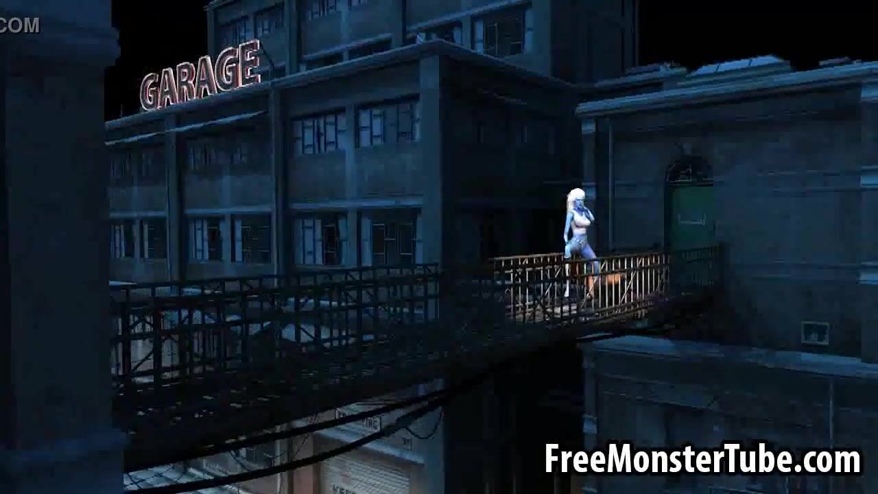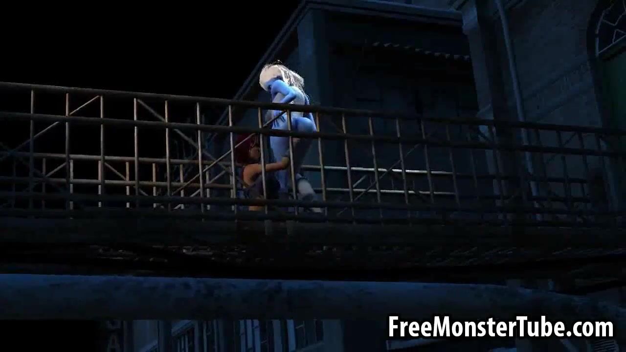 3D cartoon blue lesbian babe getting licked outdoors