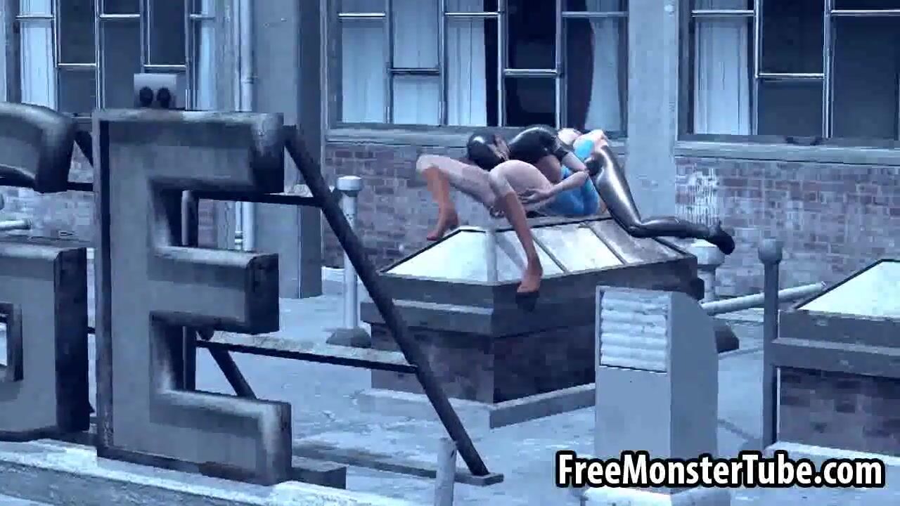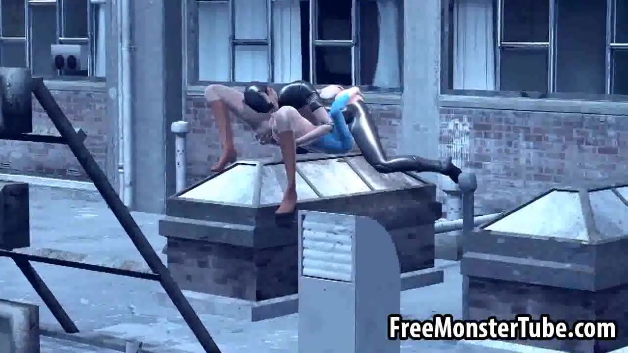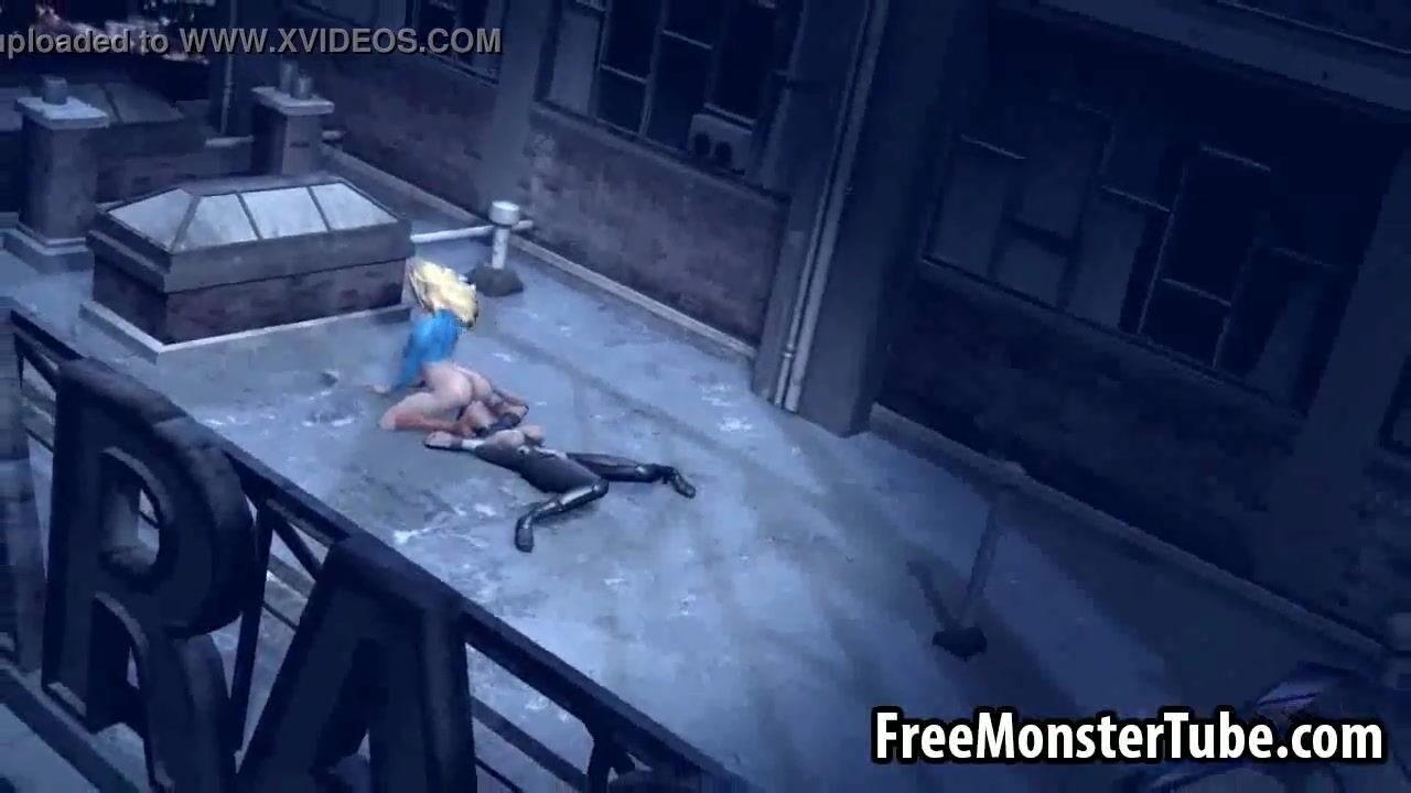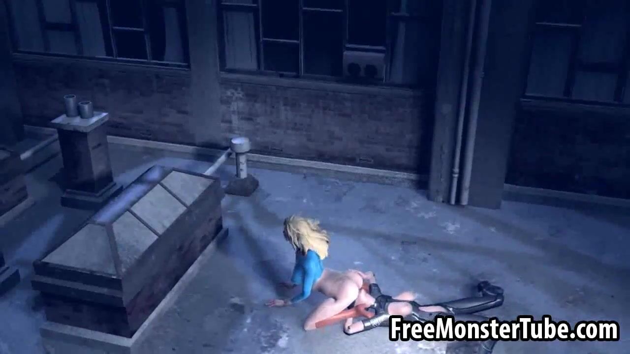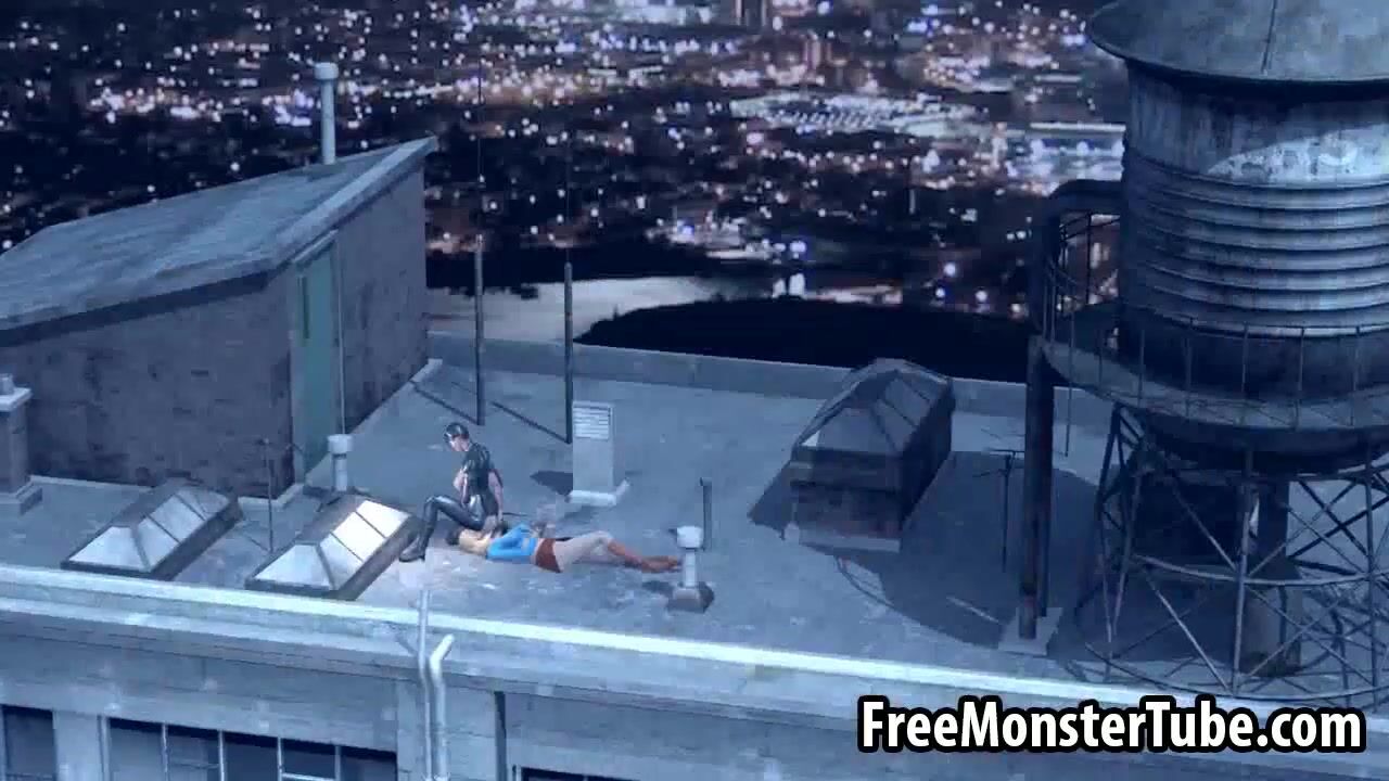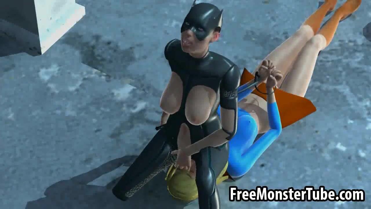 3D Catwoman licking Supergirls wet pussy on a roof
