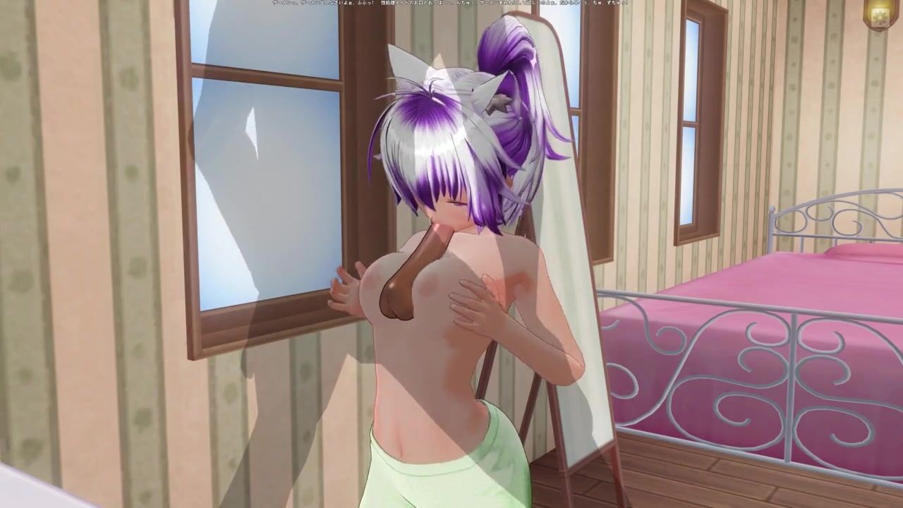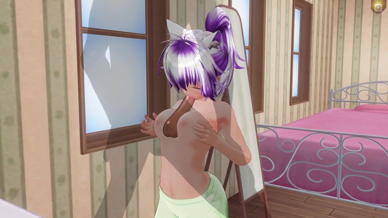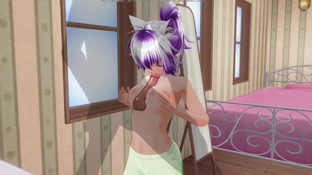 3D HENTAI Girlfriend in green pajamas rubs cock with boobs and sucks it