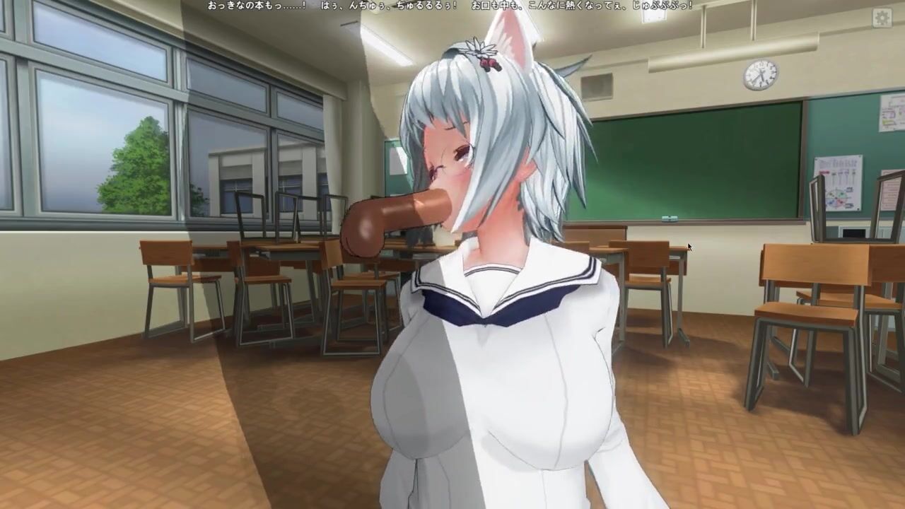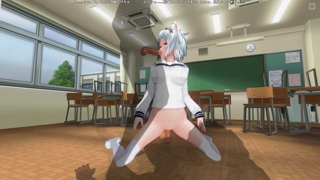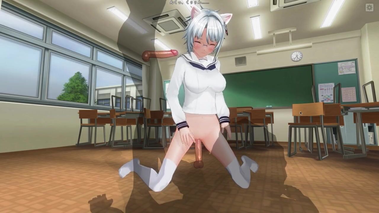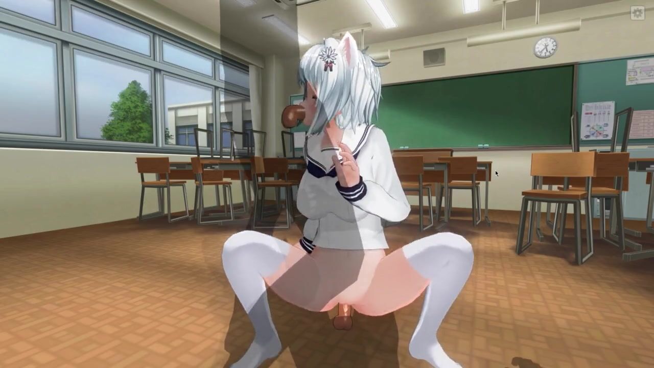 3D HENTAI Neko schoolgirl fucks with two teachers in the classroom