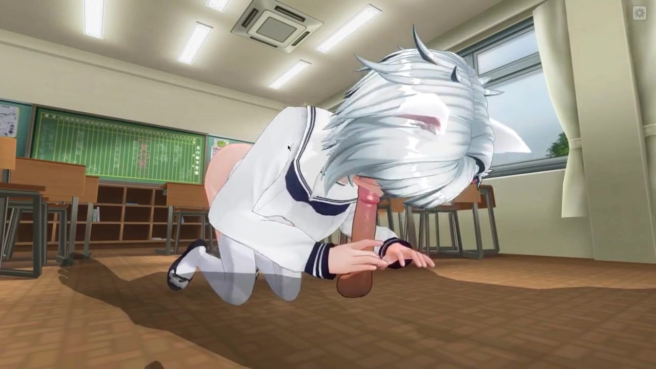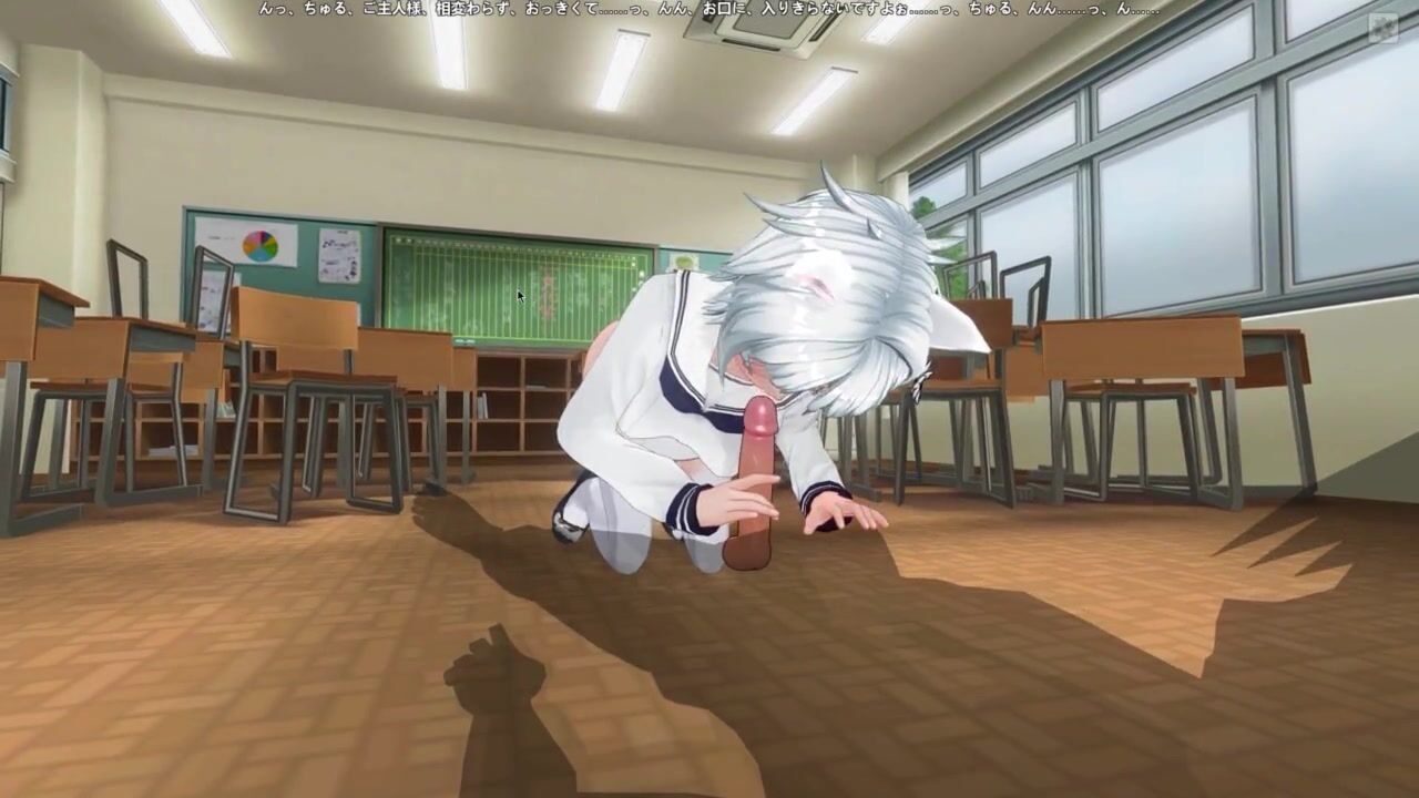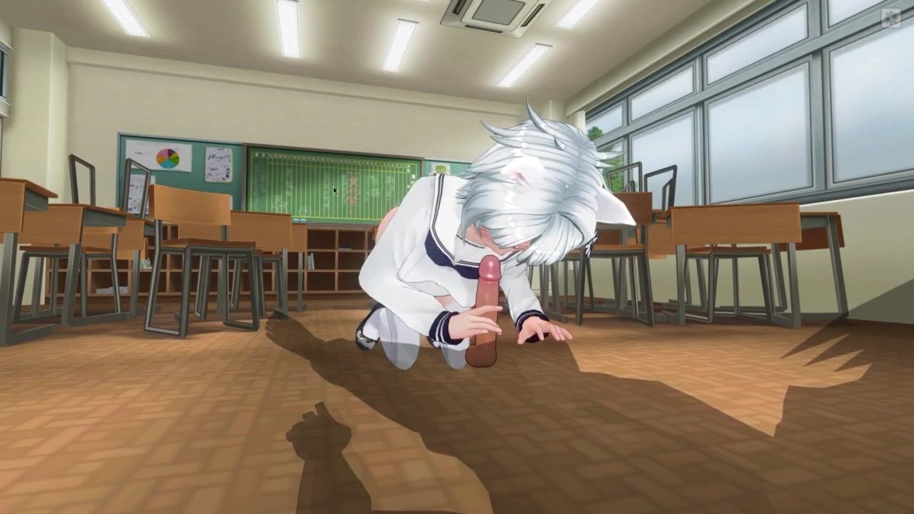 3D HENTAI Neko schoolgirl sucks teacher's cock in the classroom