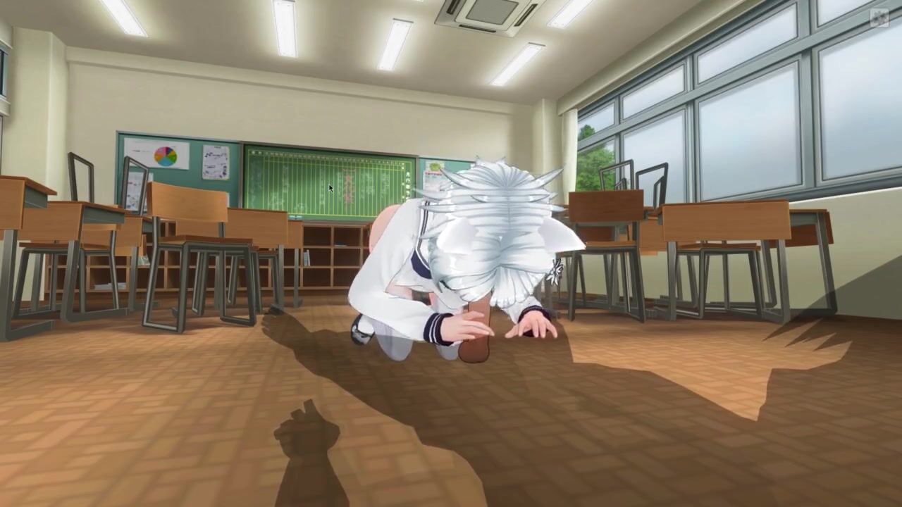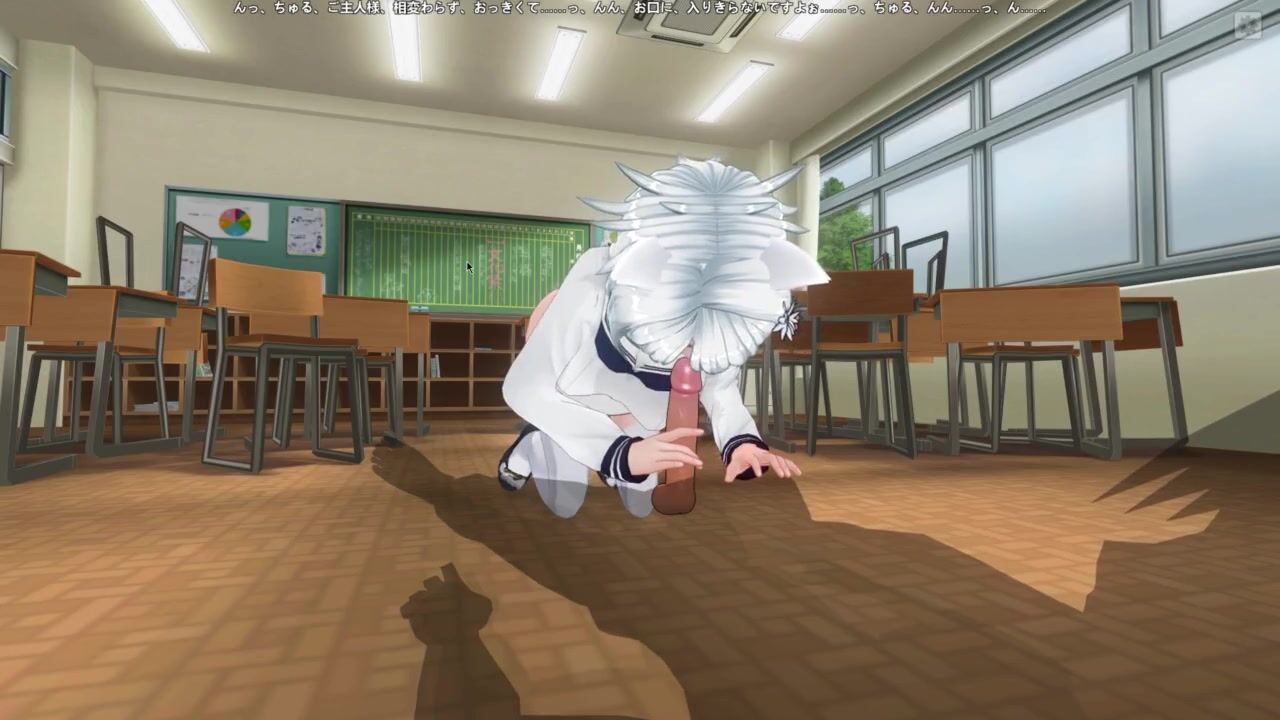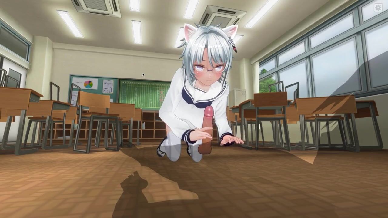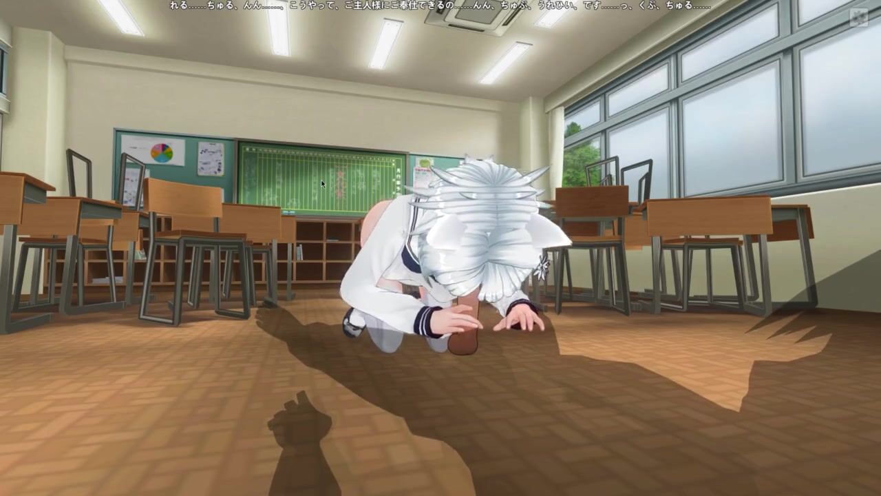 3D HENTAI Neko schoolgirl sucks teacher's cock in the classroom