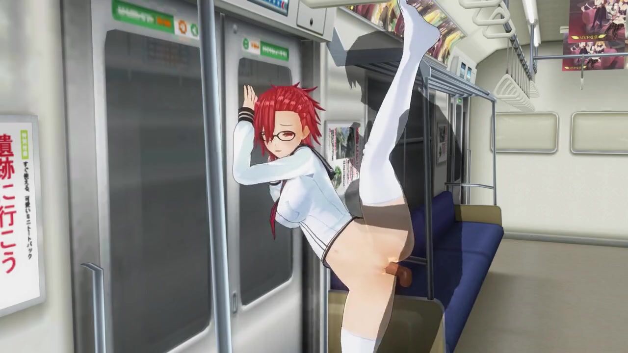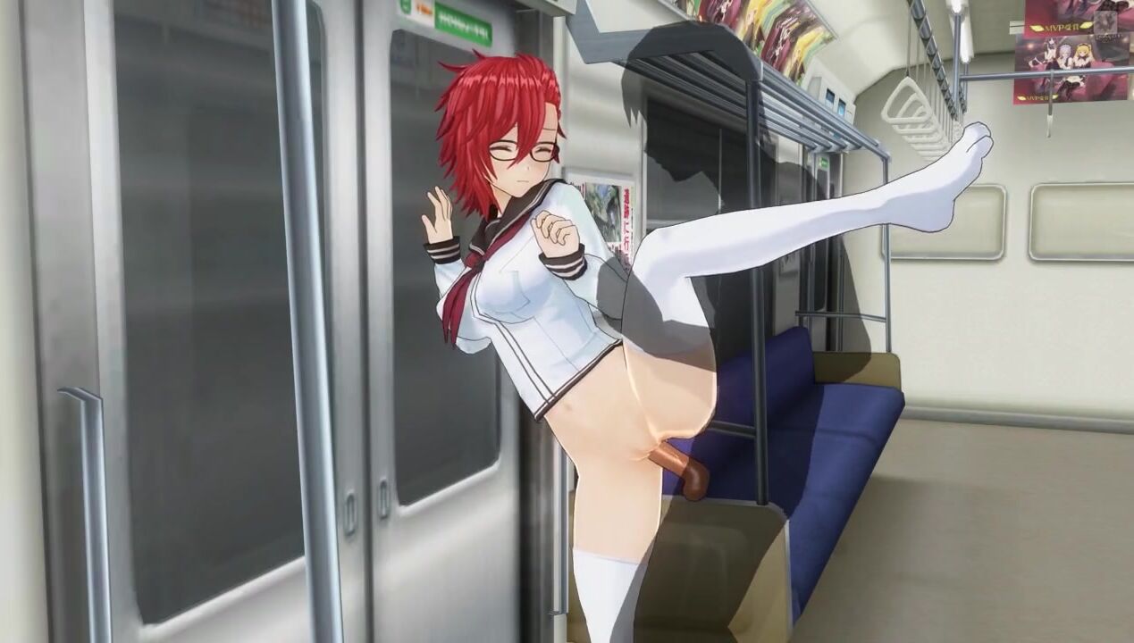 3D HENTAI Schoolgirl fucked against the wall in the night subway car