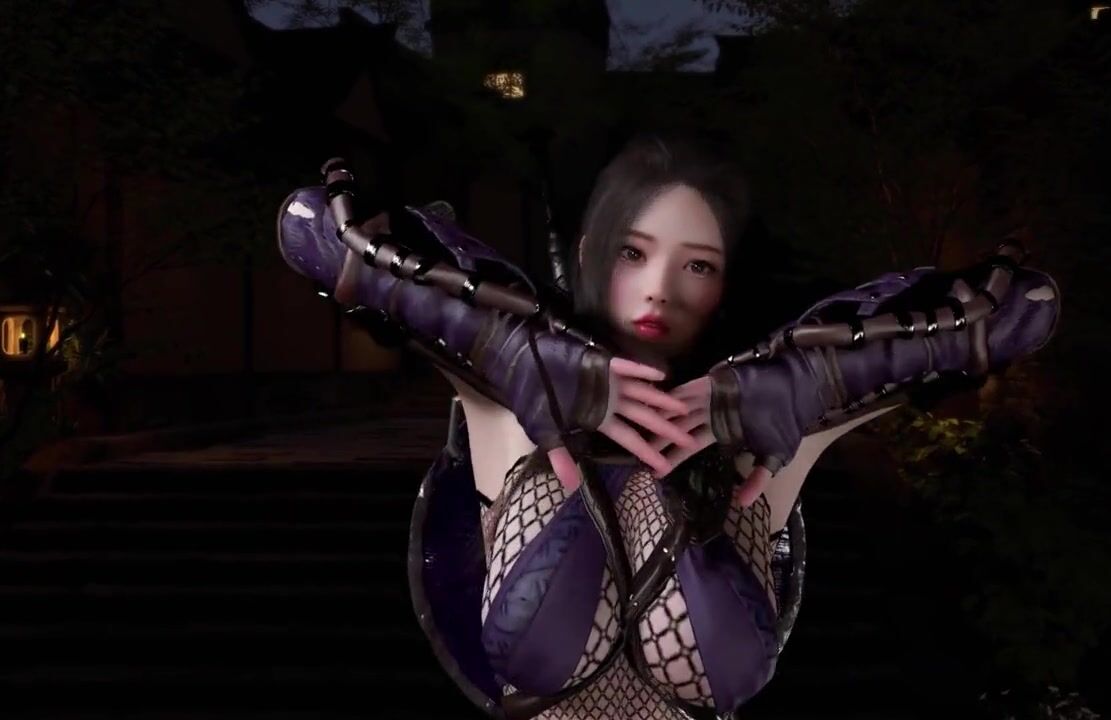 3D horny sexy Asian cosplay stripper show her perfect boobs