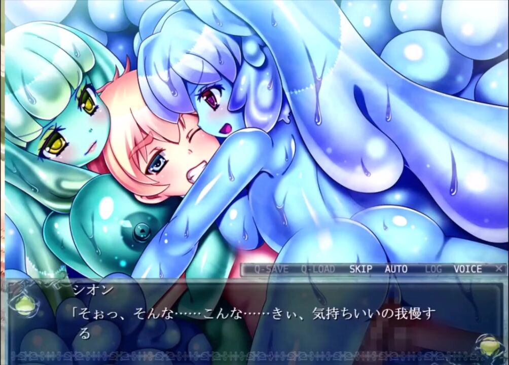 スライム娘達が3Pハーレムにて童貞を筆おろし★背後からハグしつつ騎乗位