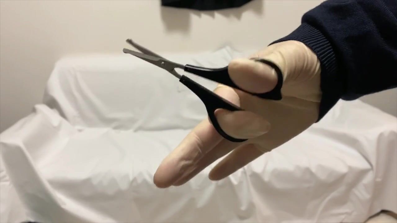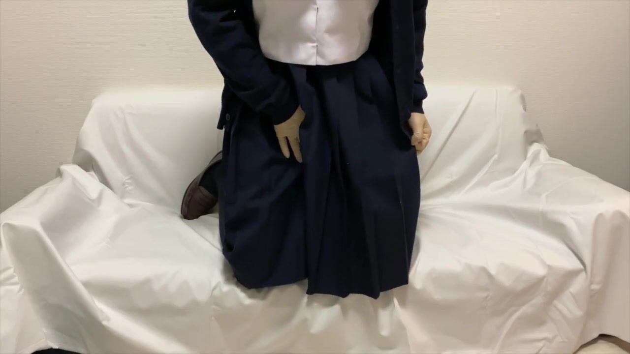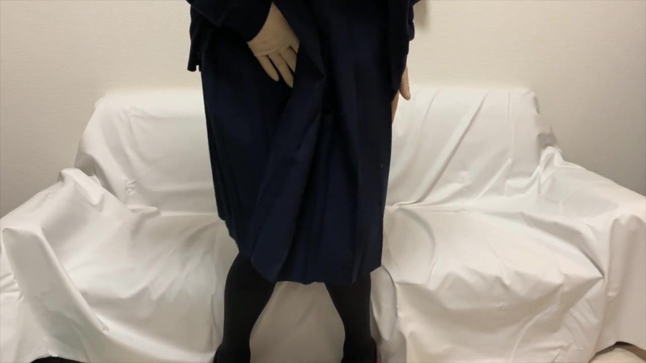 ゴム手袋 勃起したあそこが苦しくてタイツをハサミで切ってビショビショなオナニーするセーラー服男の娘