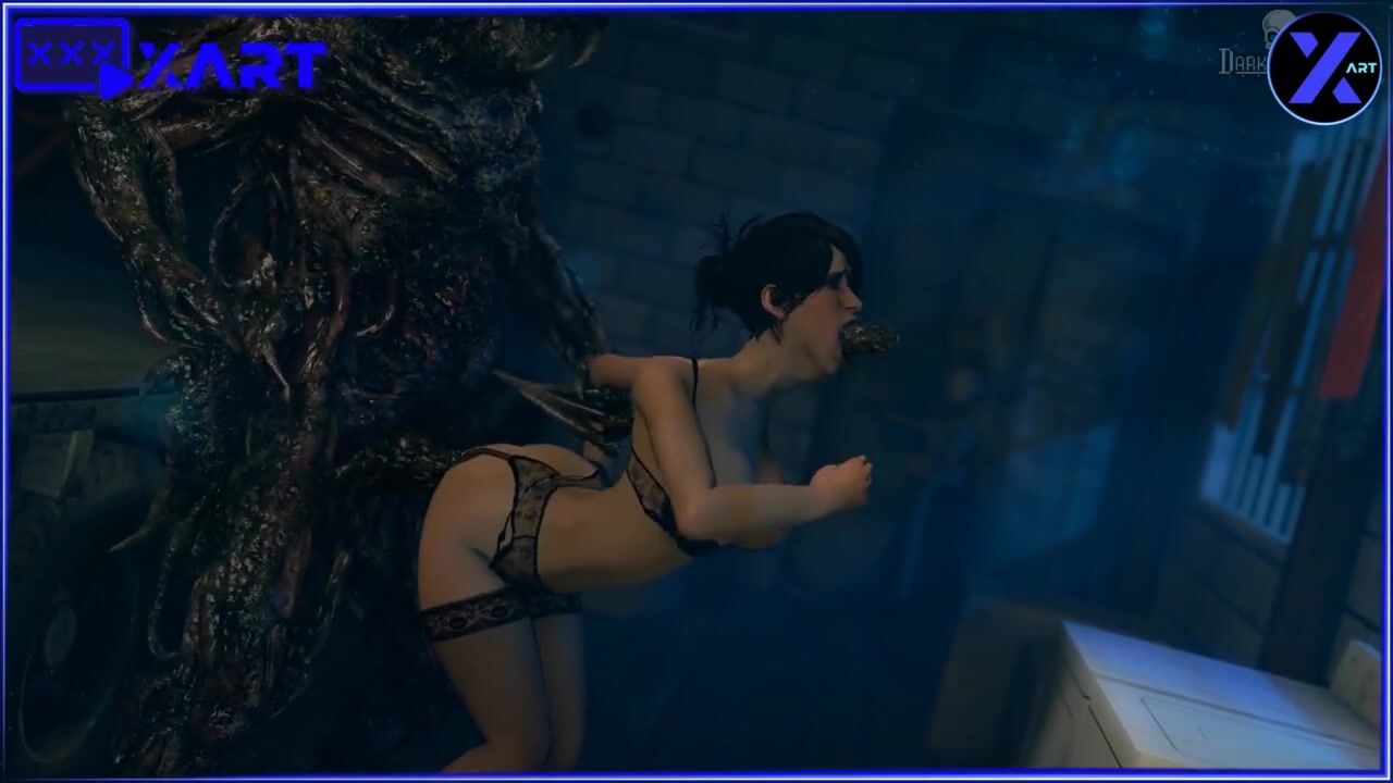 A monster with a very big dick fucks a girl in stockings and underwear in anal