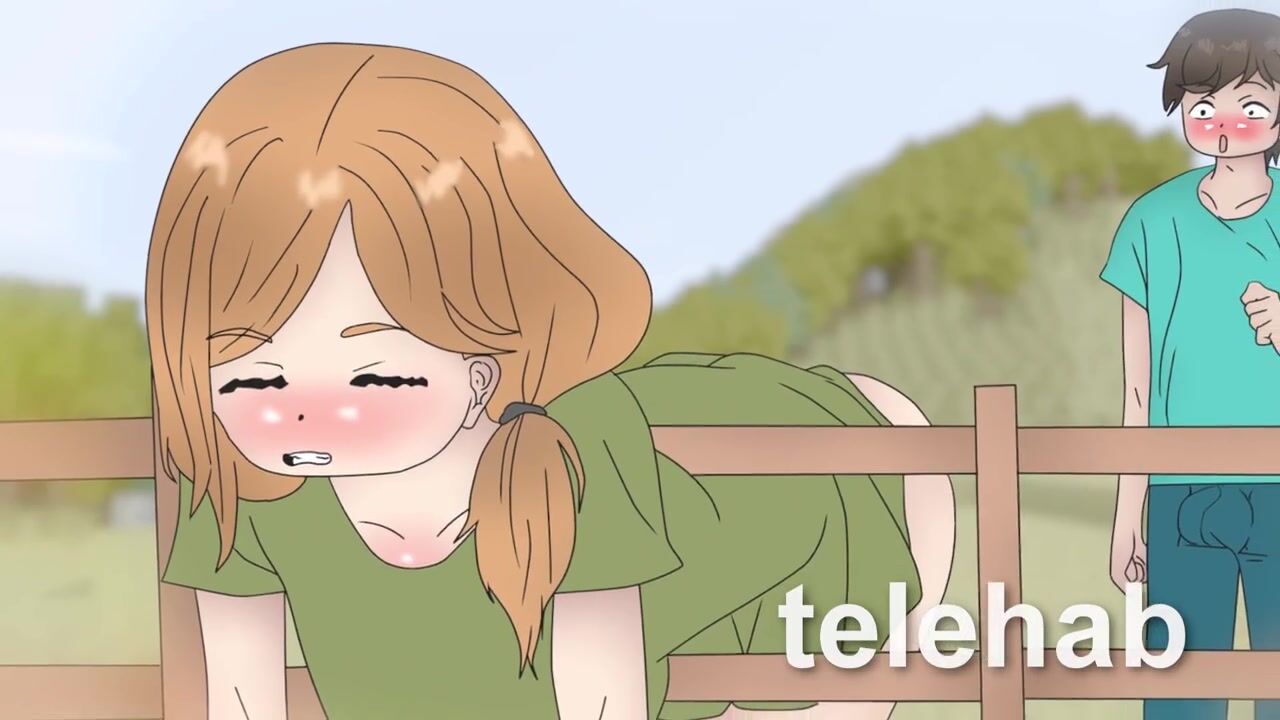 Alex is stuck in the fence ! Minecraft hentai with Steve