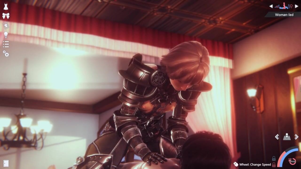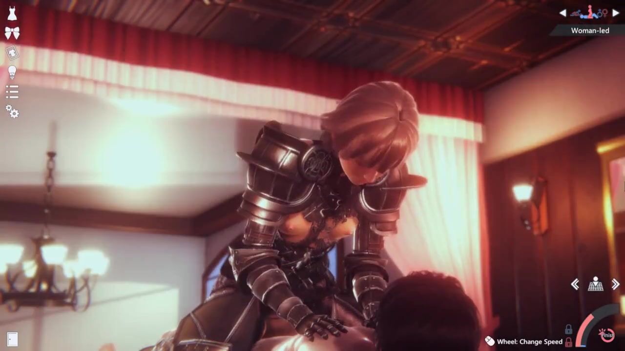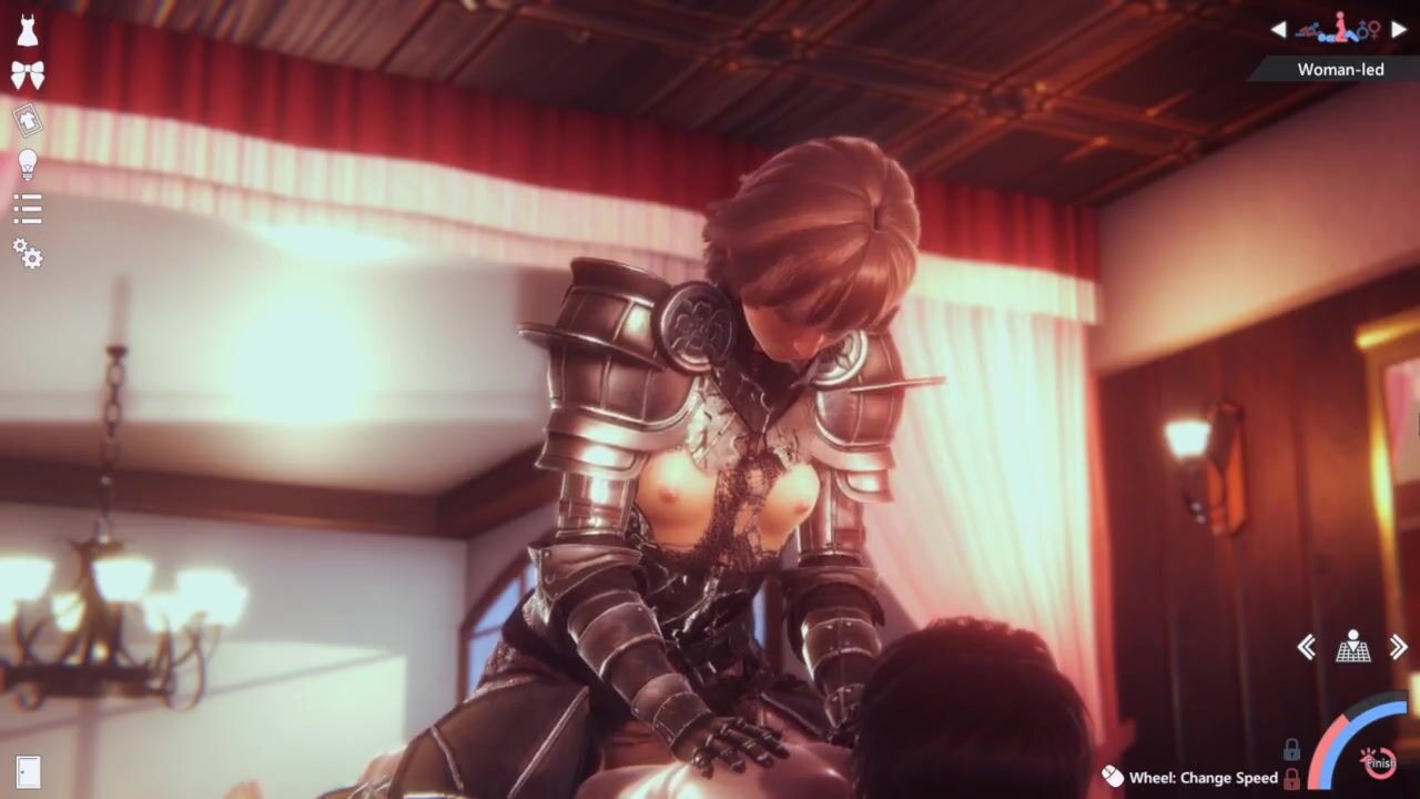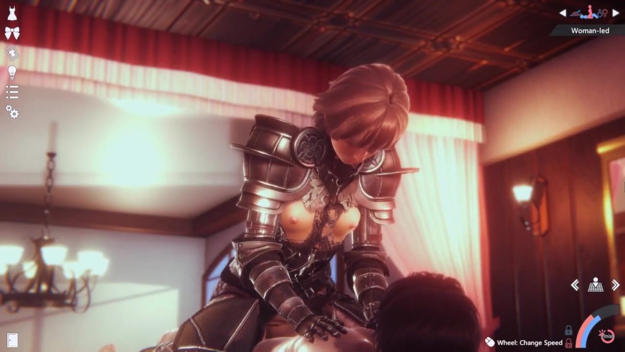Animated cosplaying girl riding a horny guy