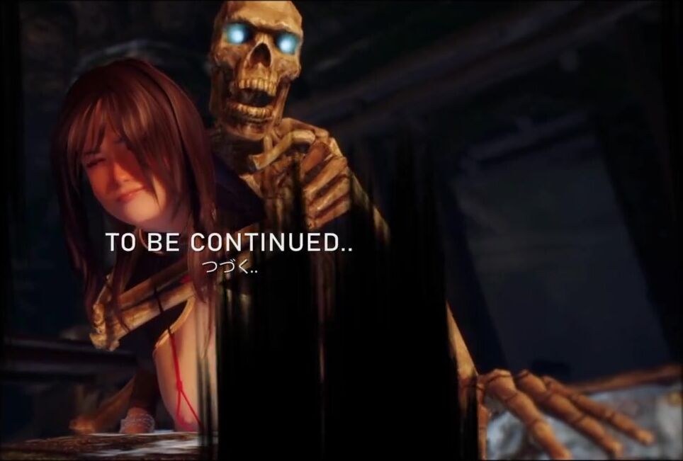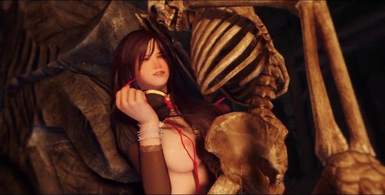 Asian chick fucks skeleton in dungeon
