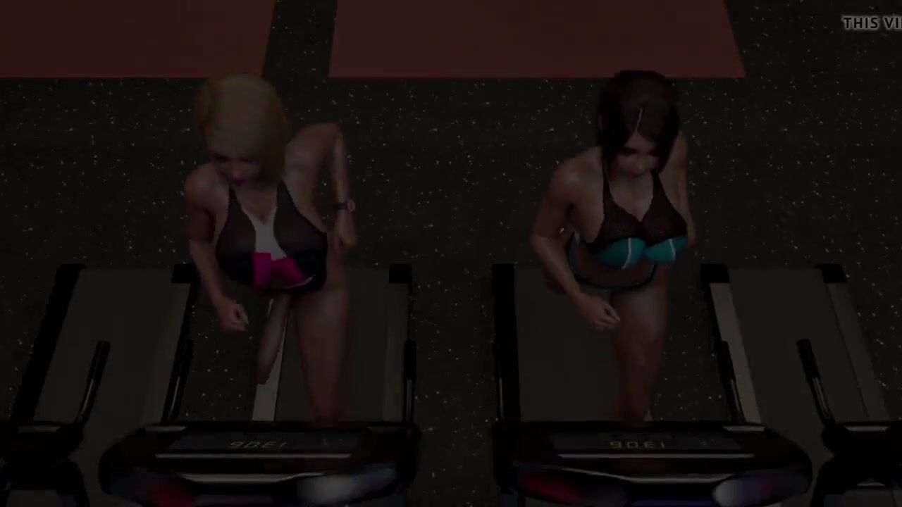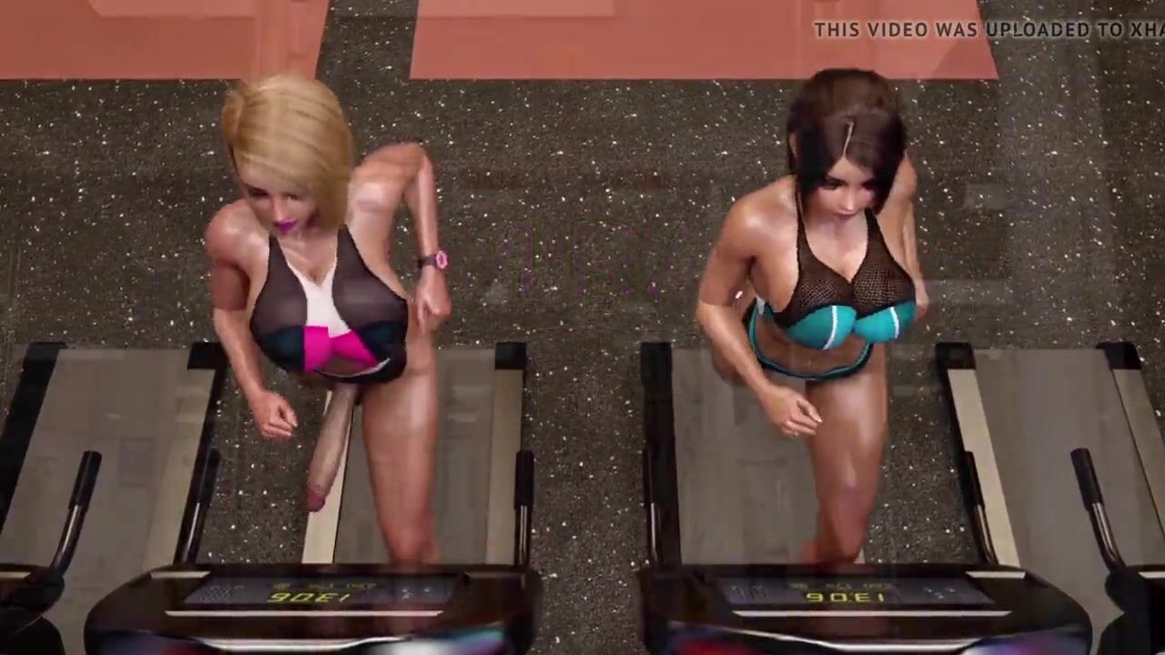 Big tits futanari babes having sex in a gym