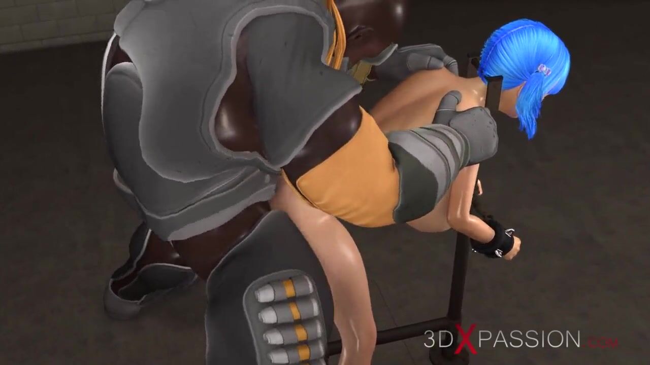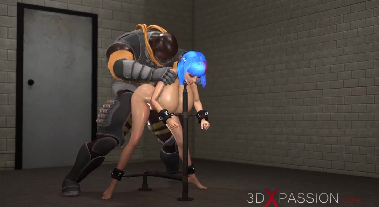 Black space soldier bangs a restrained girl with big tits