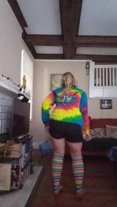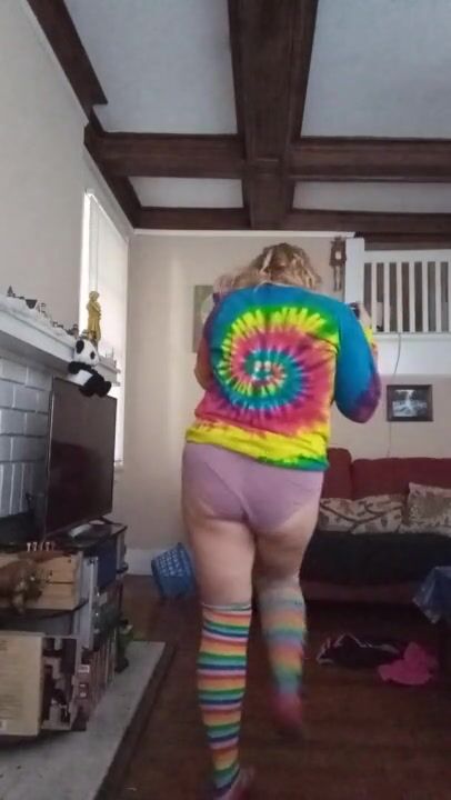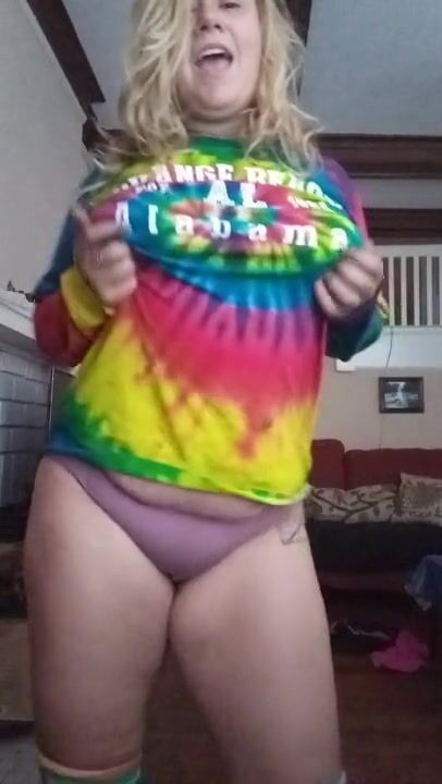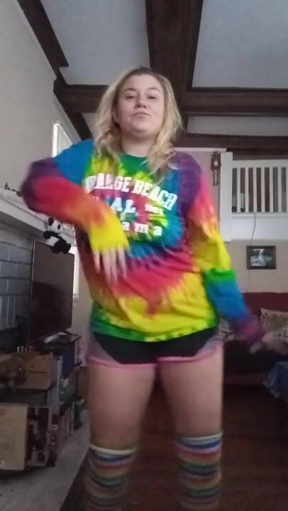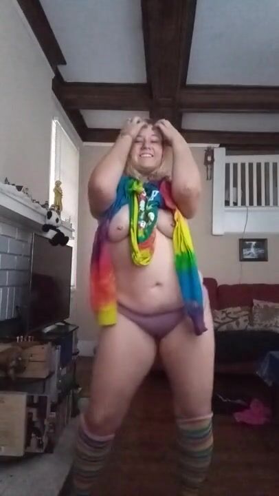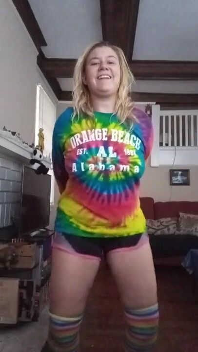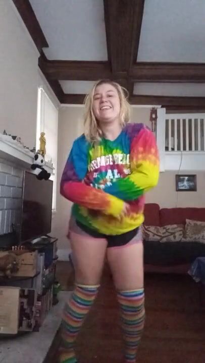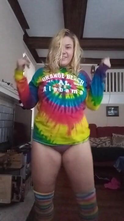 Blond girl Strip Dances in knee high socks