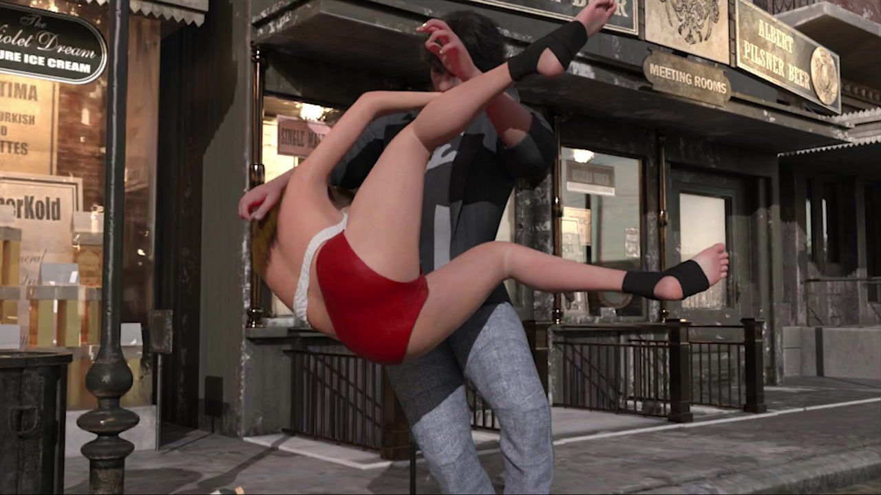 Blonde fighter gets in attention of a boy in the street and gets fucked