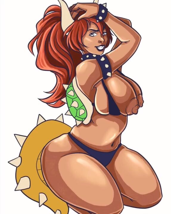 Bowsette Nude Pinup, Queen Bowser Tits out Speedpaint, Hentai Art Vertical Video