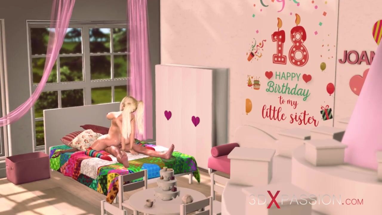 Brother plays with her sister college girl in the living room