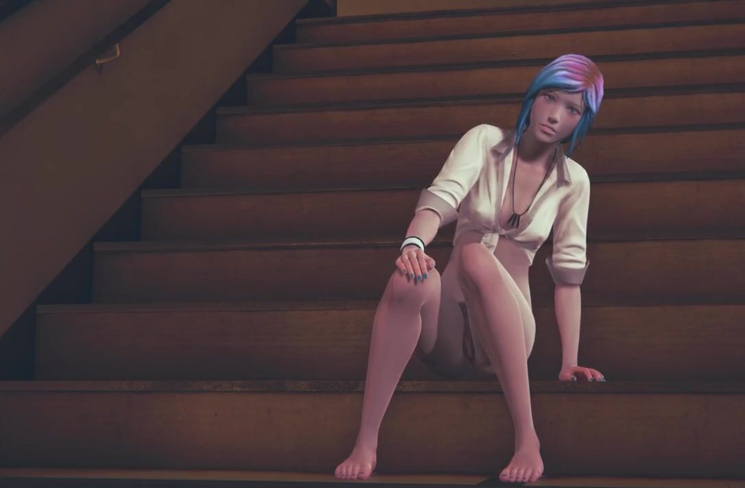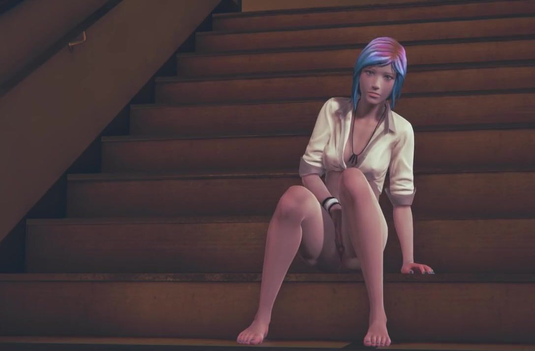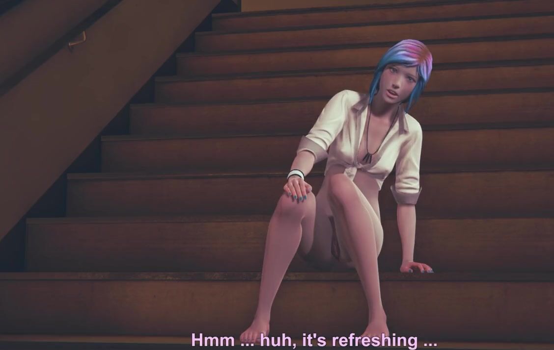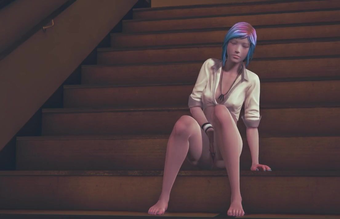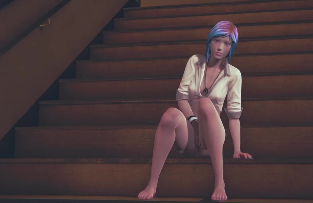 Chloe Price masturbates on the stairs at school
