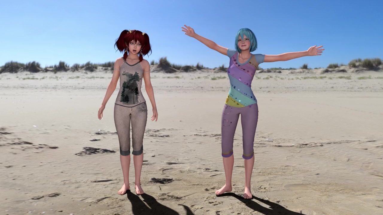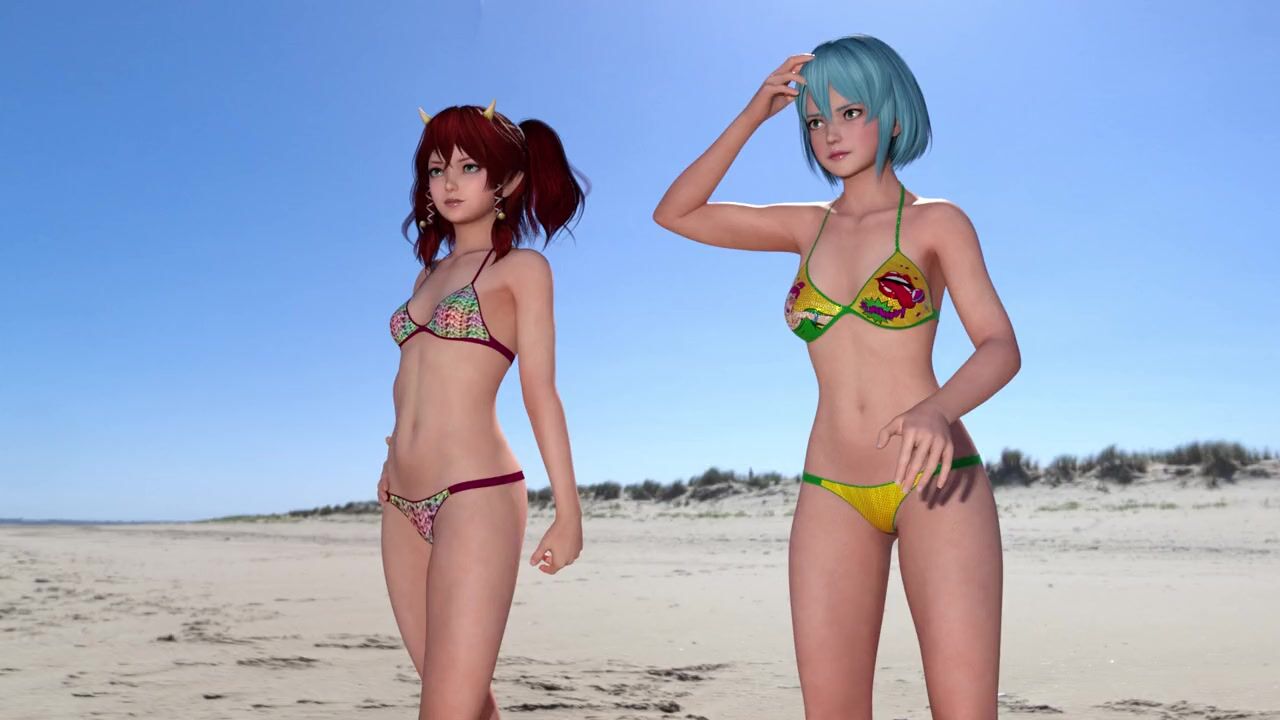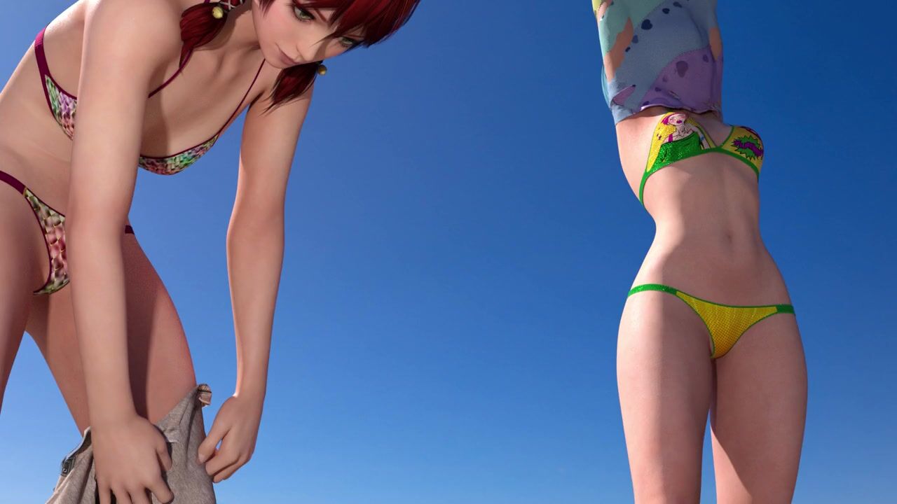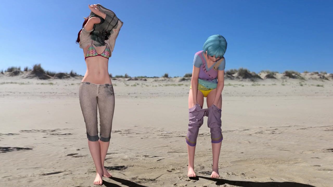 Cute futanari girl fucks her friend on the beach while getting undressed