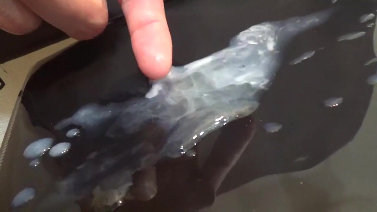 オナ禁明けのお久し射精を気持ちよく行い、射精後は不純物の多い濃厚精液をいじる変態君。