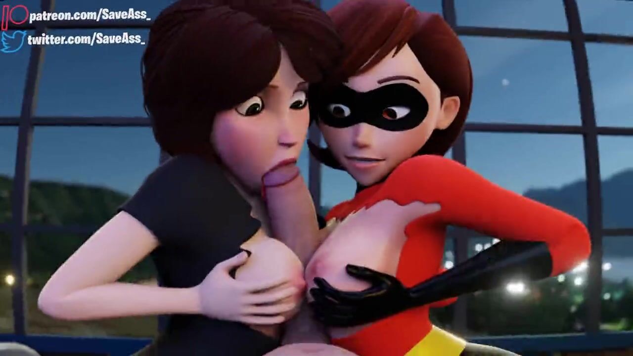 Elastigirl fucked by two huge cocks - Step Aunt Cass and Helen Parr Hard Rough Sex (Anal Creampie, Hard Anal Sex) by Sav