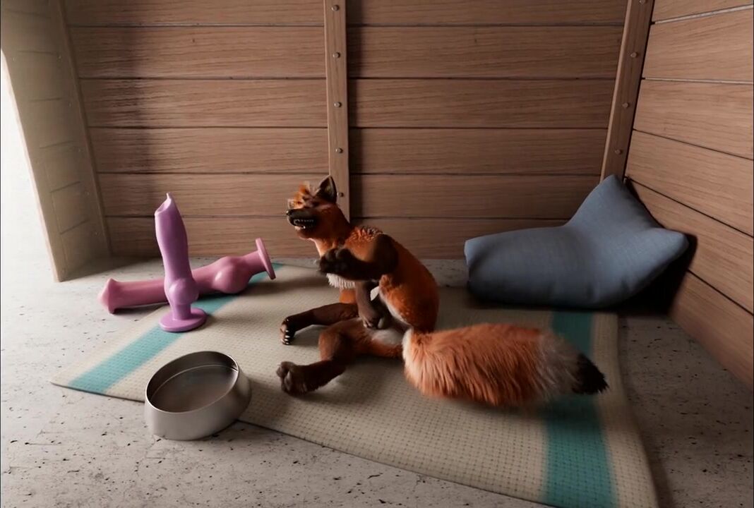 Fox's playing pussy cat in kennel by h0rs3