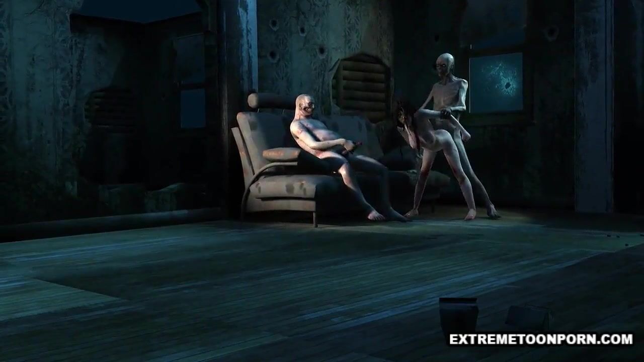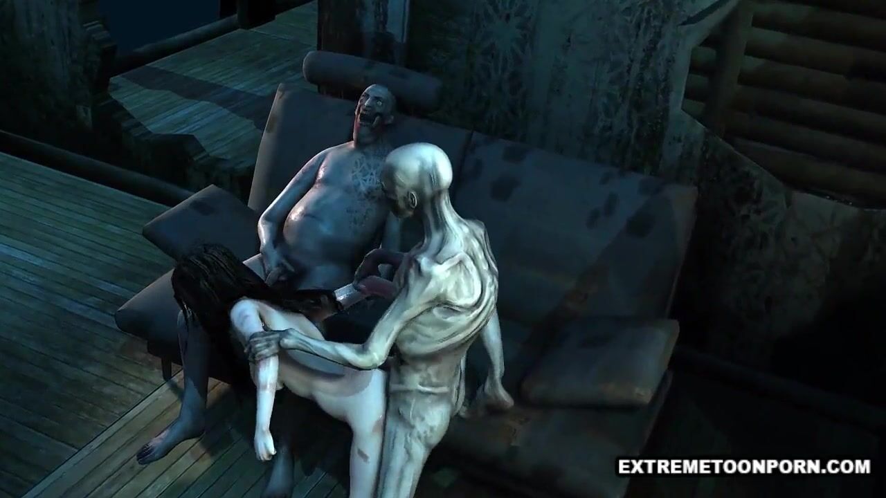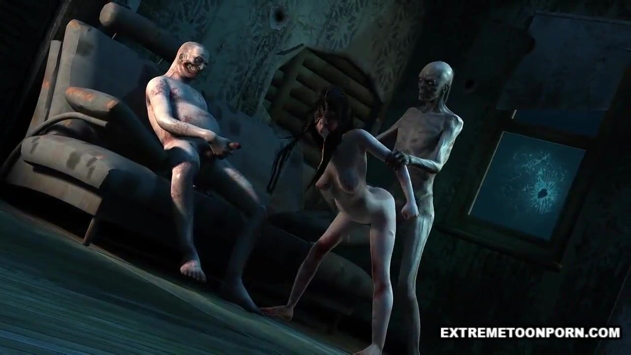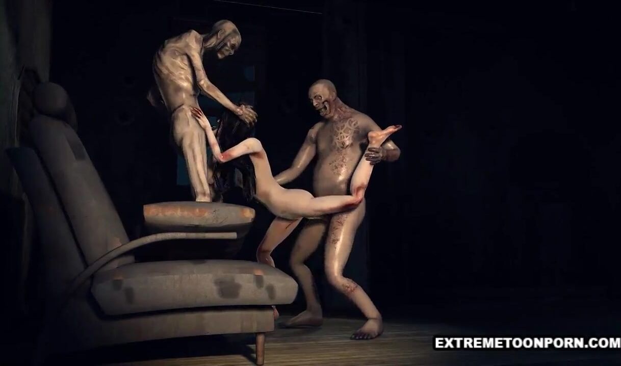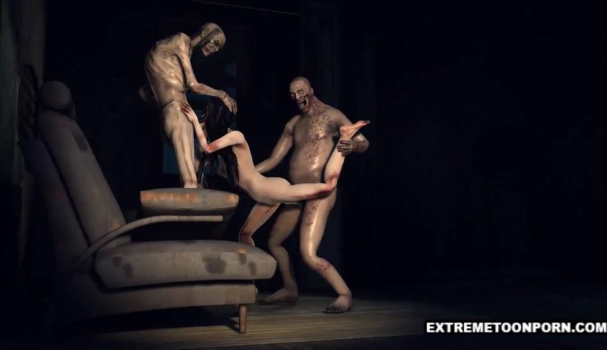 Foxy 3D cartoon zombie babe gets a double teaming