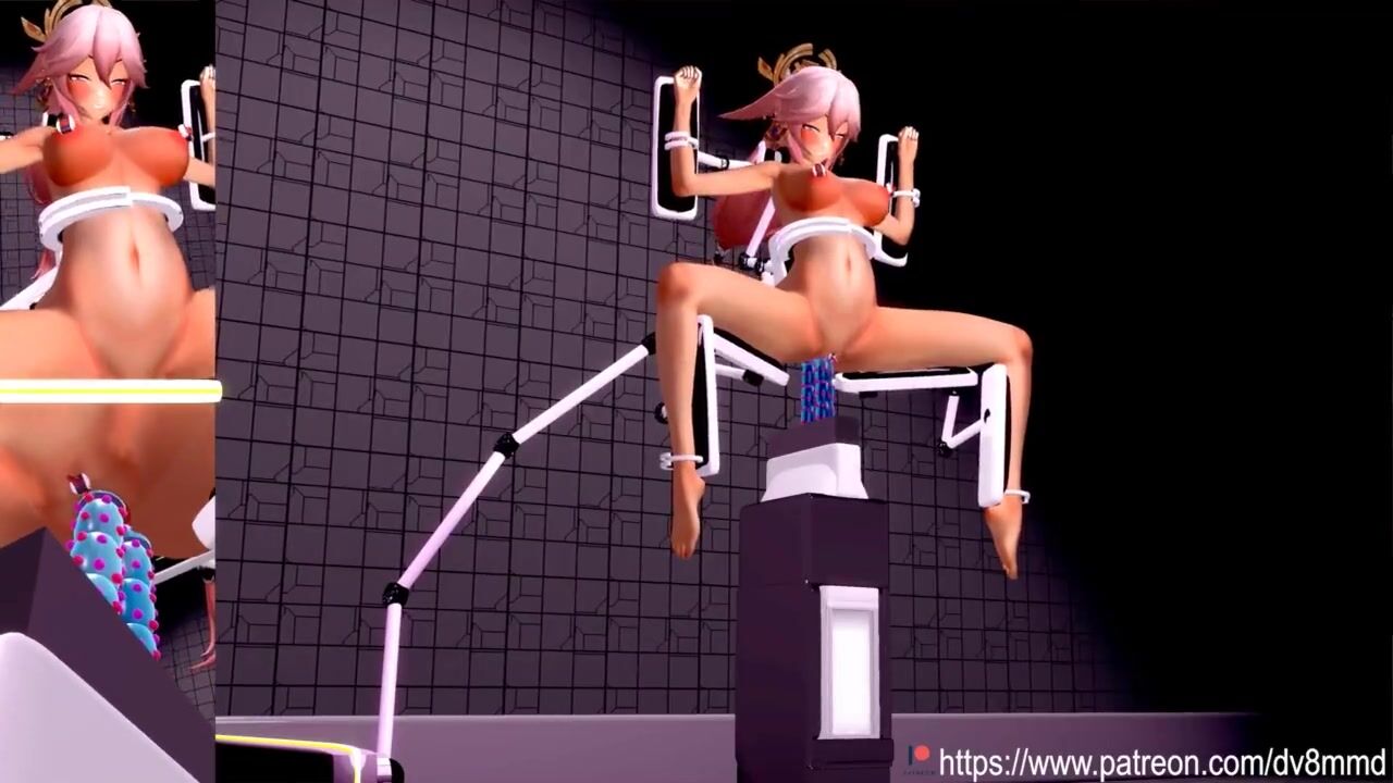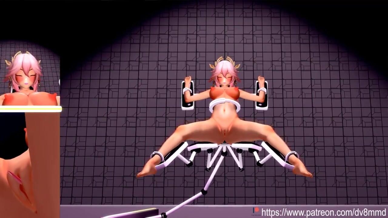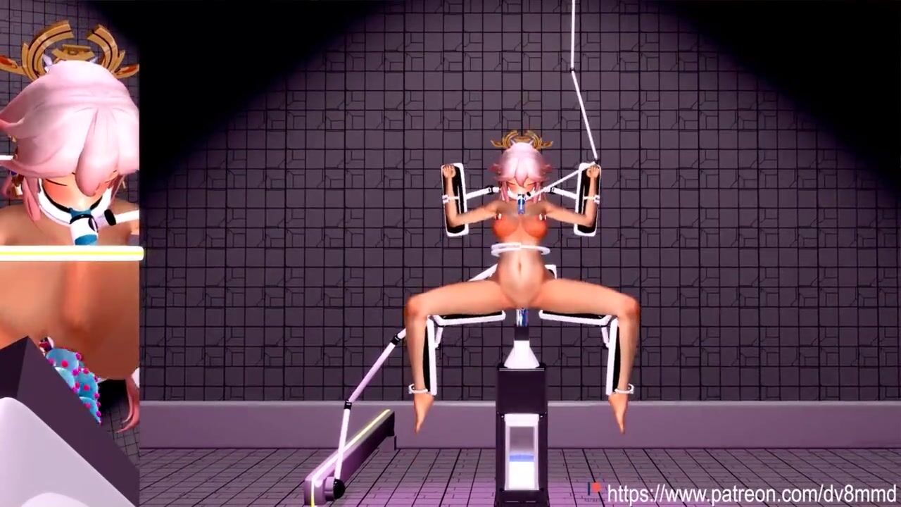 Genshin Impact Yae Miko - Machine Bondage DP Cumflation Facefucking