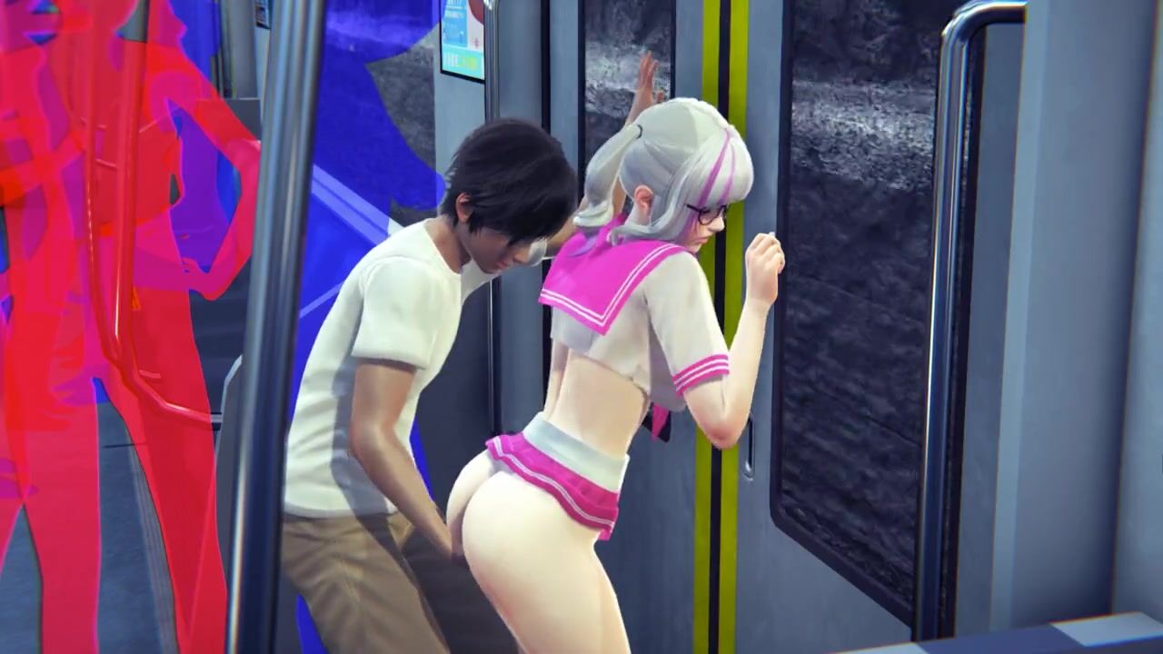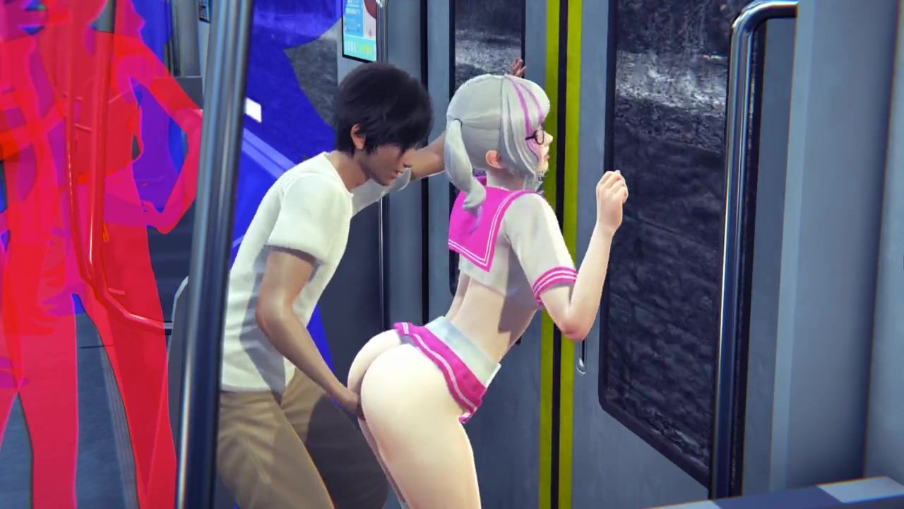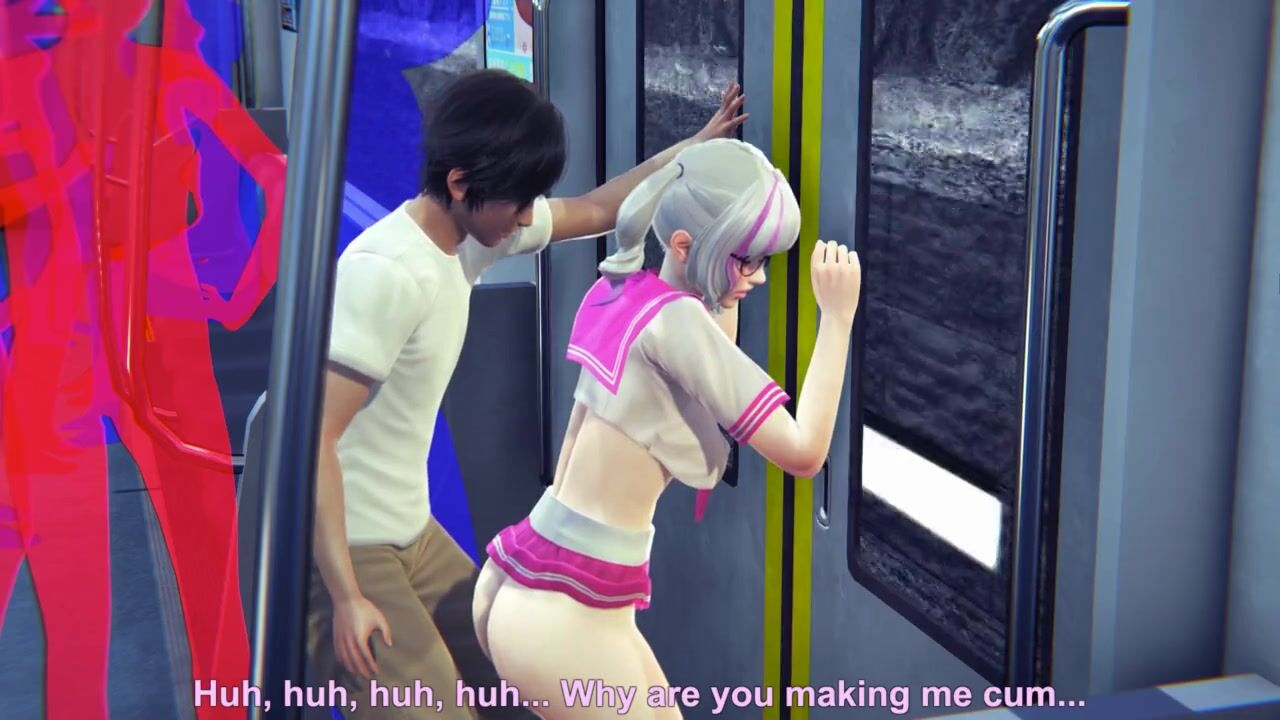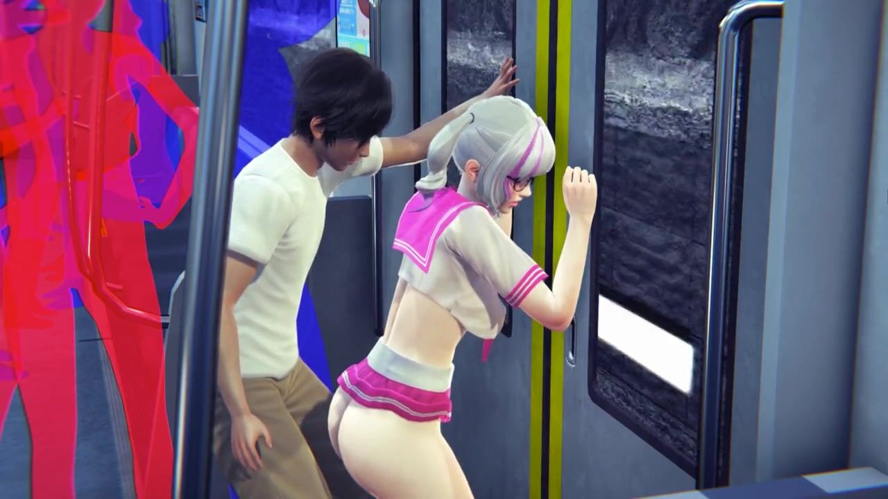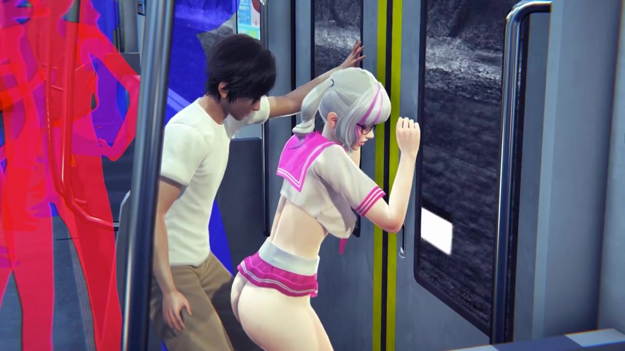 Guy masturbates the pussy of a schoolgirl in the subway car