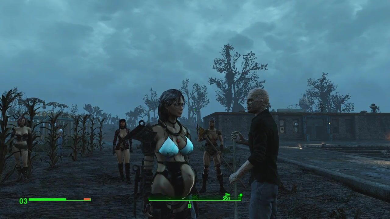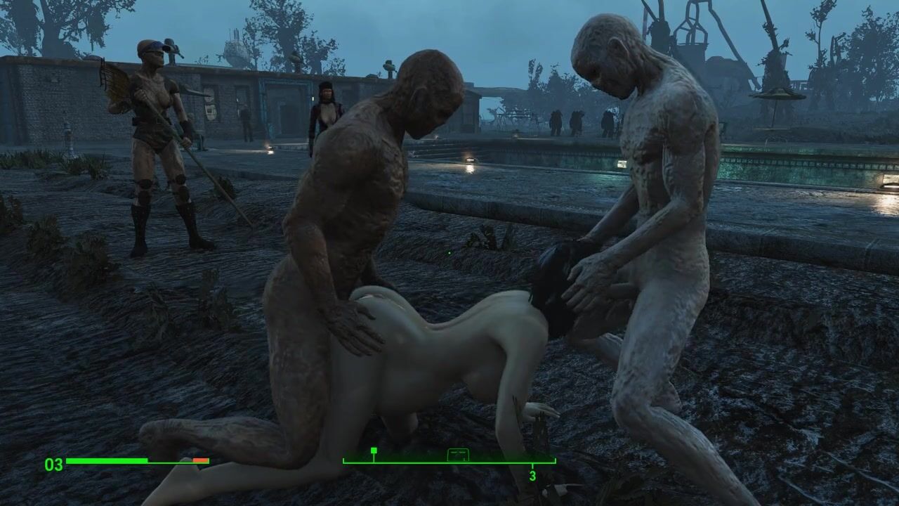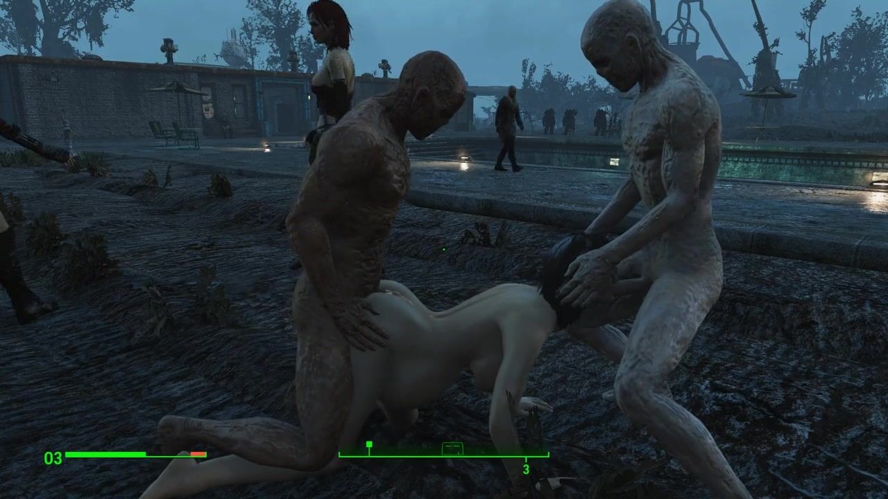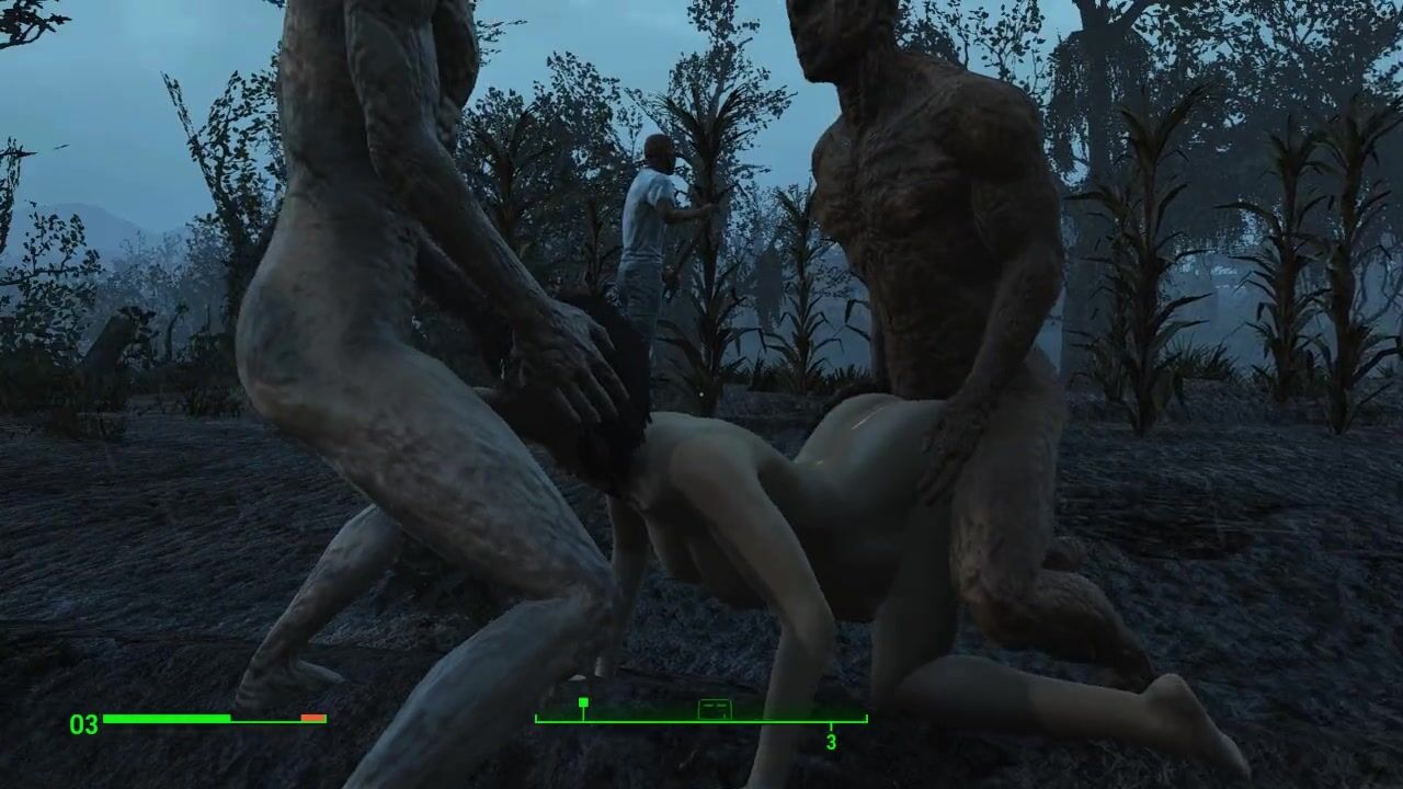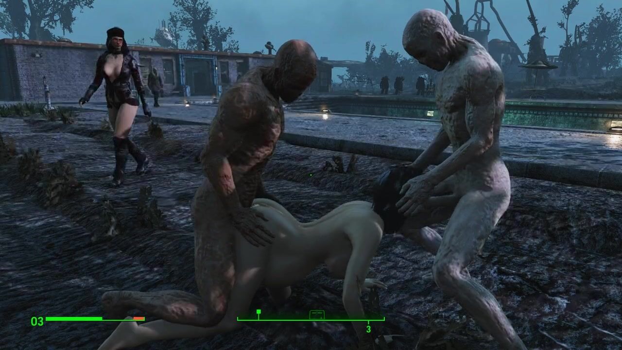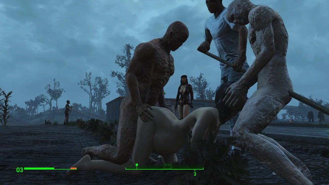 Half-zombie, half-people fuck a pregnant sexy brunette | Porno Game 3d