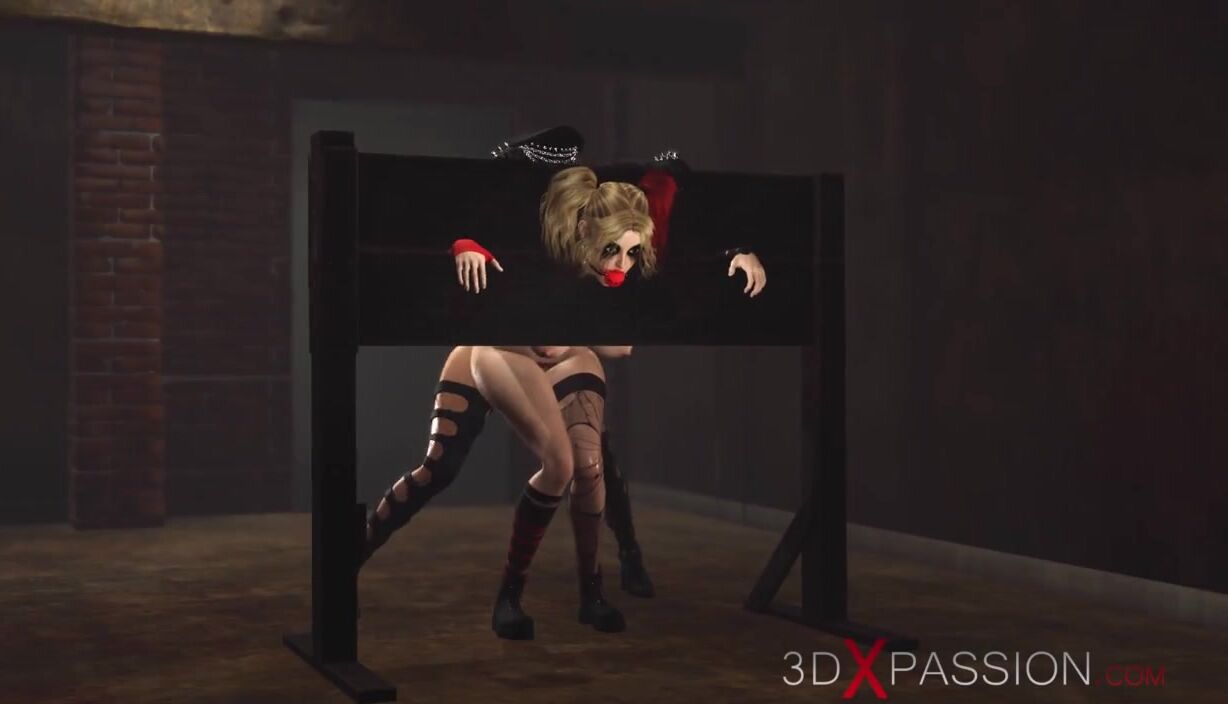 Hardcore dickgirl bangs hard a sexy Harley Quinn in the basement