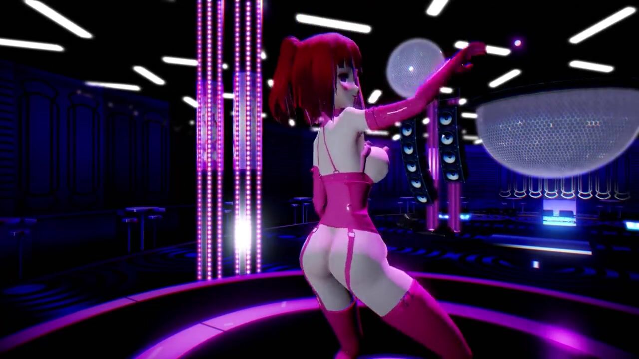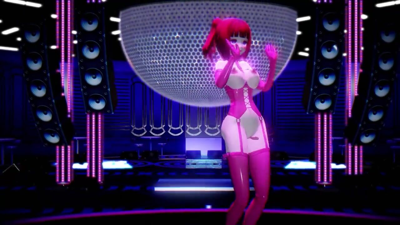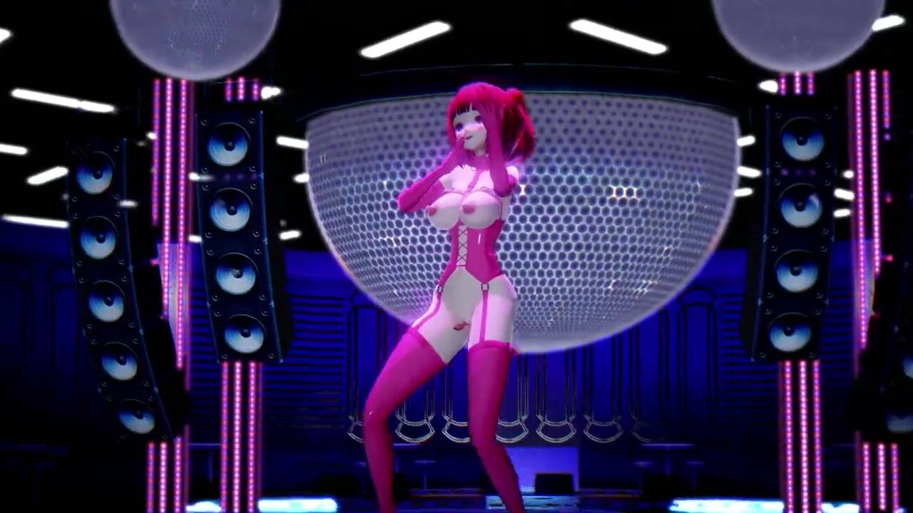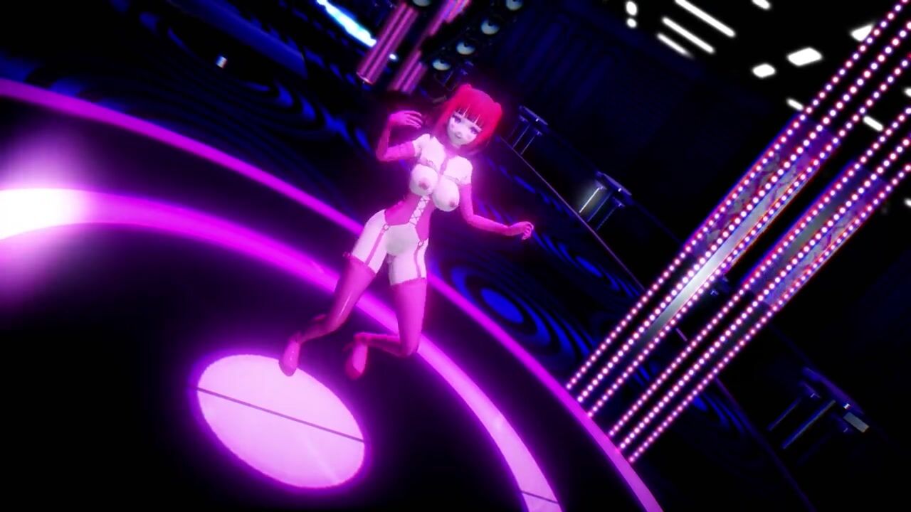 Hentai Girl with Big, Erect Clit and Nipples Dancing to Pink Cat on Stage