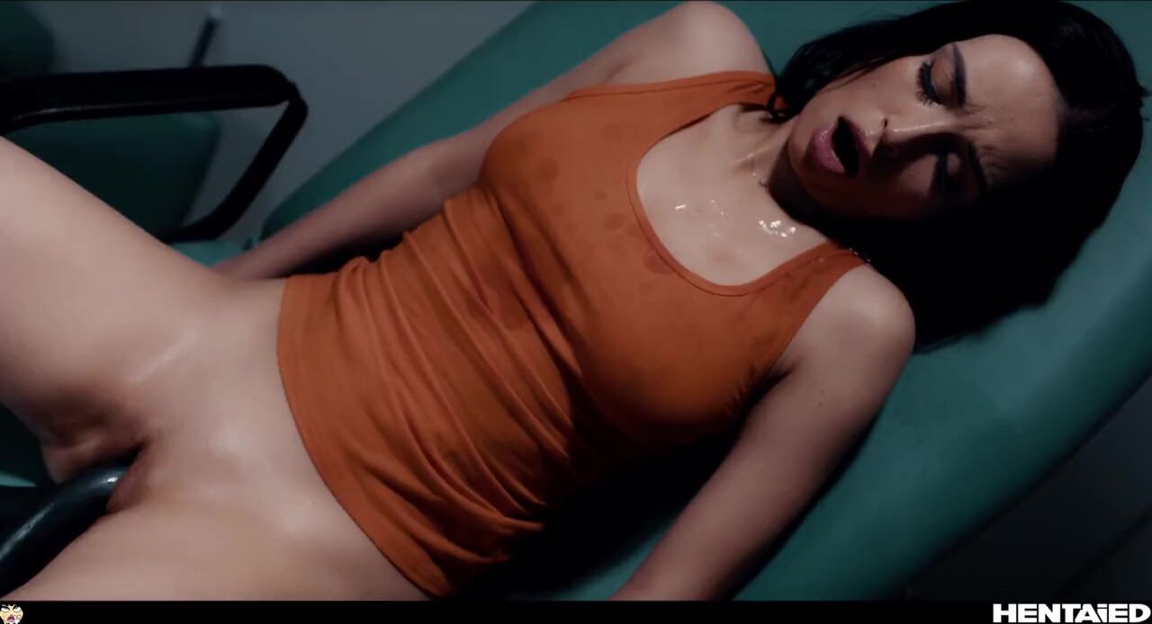 Hot brunette fucked and filled up with cum by alien monsters