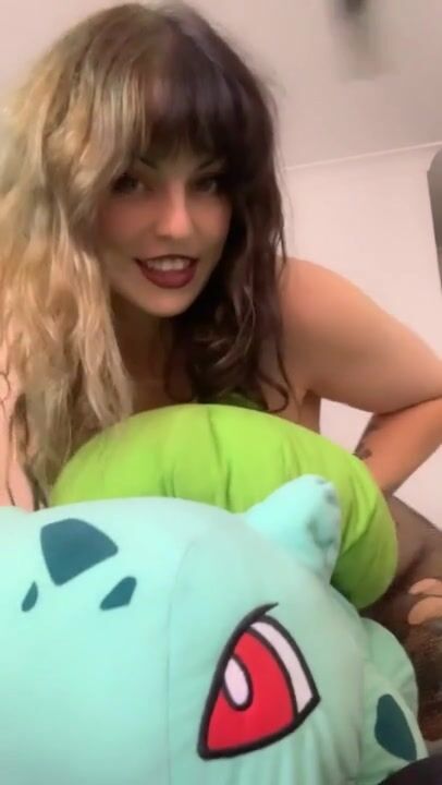 Hot goth nerd girl plays with favourite Pokémon