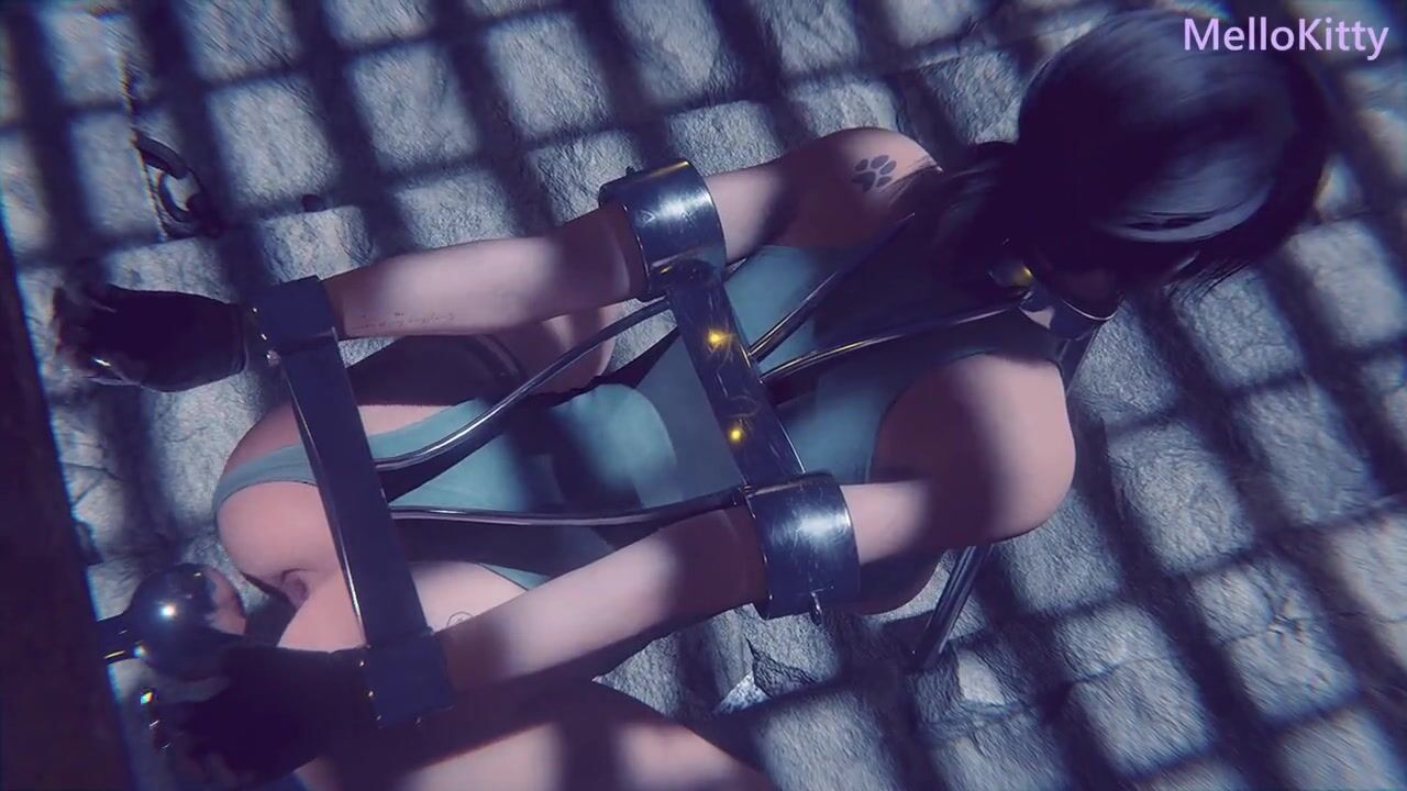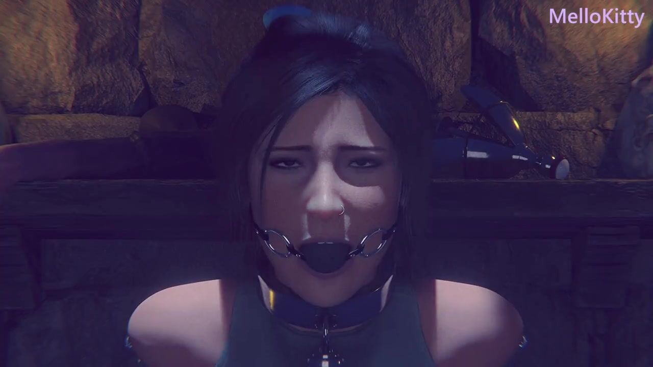 Lara Croft Tied Up BDSM - Fast Dildo Machine - Anal