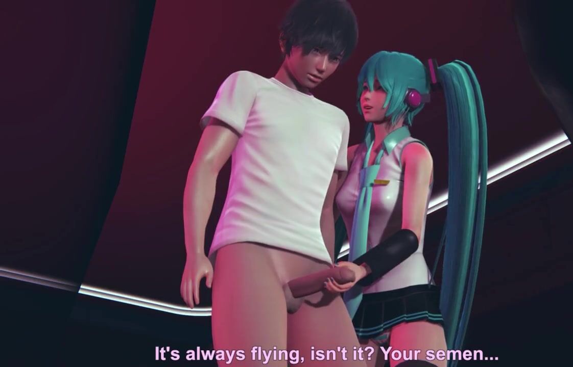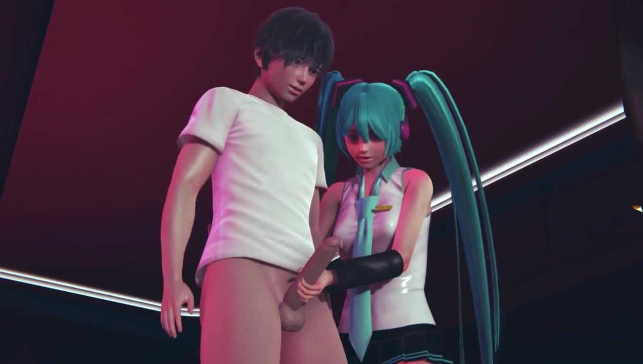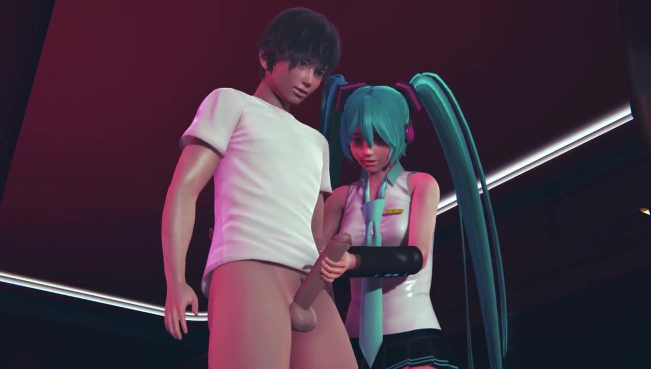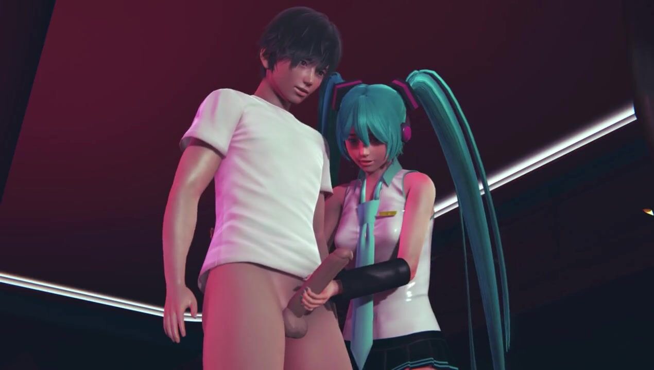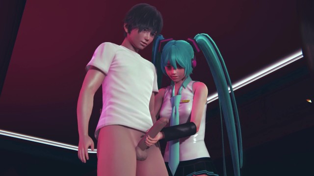 Miku jerks off cock to guest in public