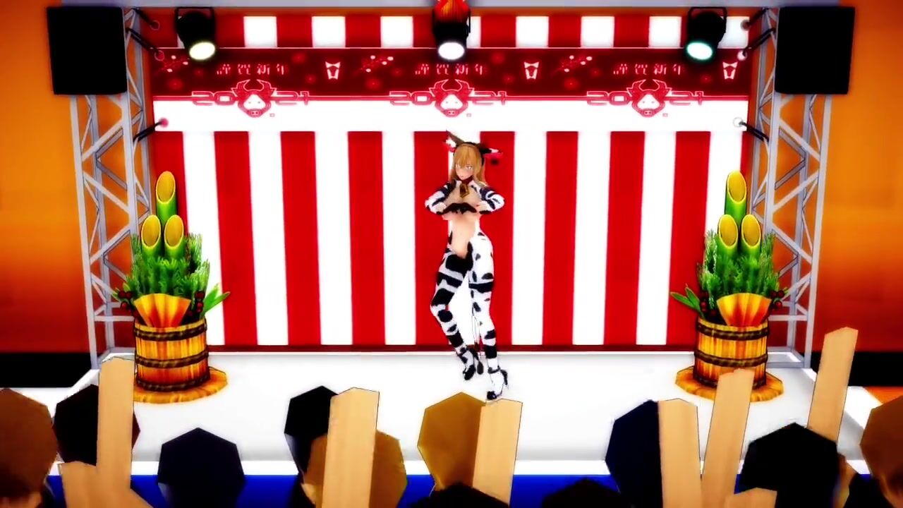 Mmd Bismarck Cow Girl Outfit and Shaved Pussy Fap Challenge during Public Concert