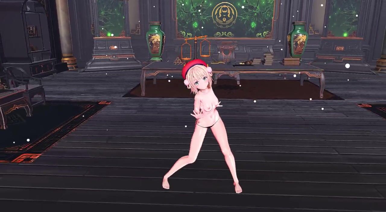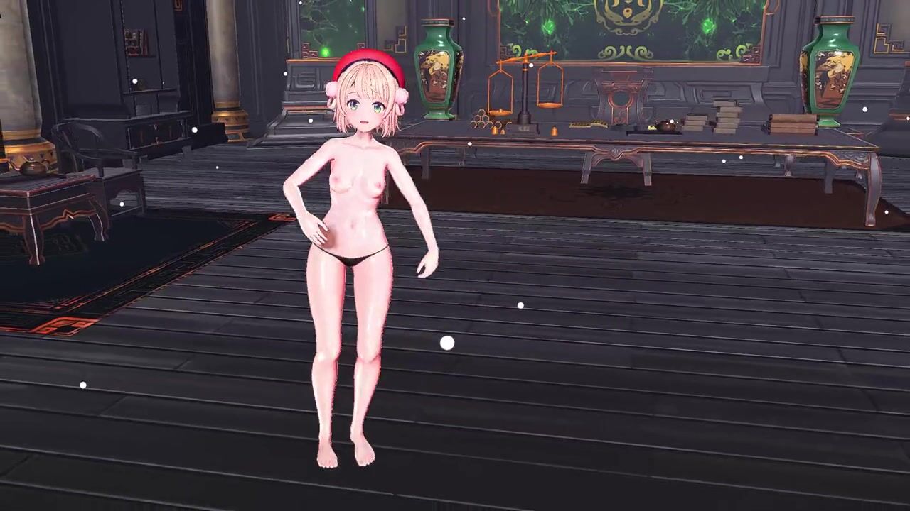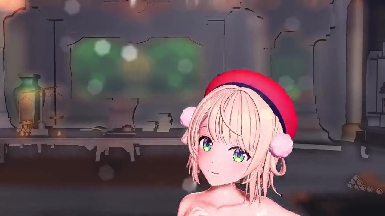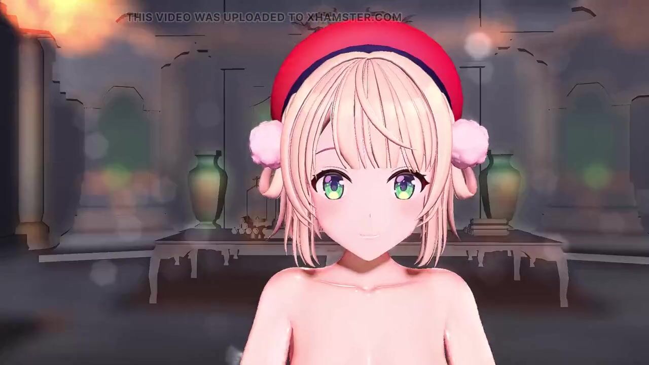 Hot blonde in santa claus vest having sex with a man in hentai game
