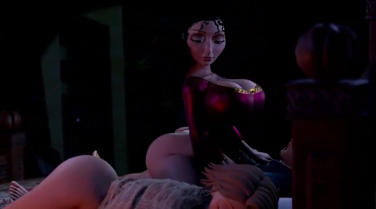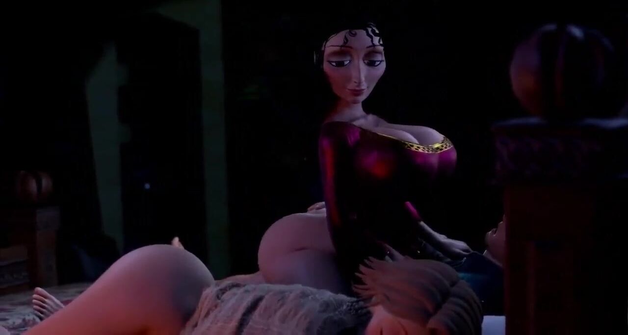 Mother Gothel riding Flynn