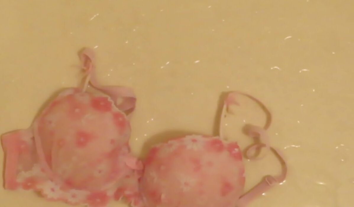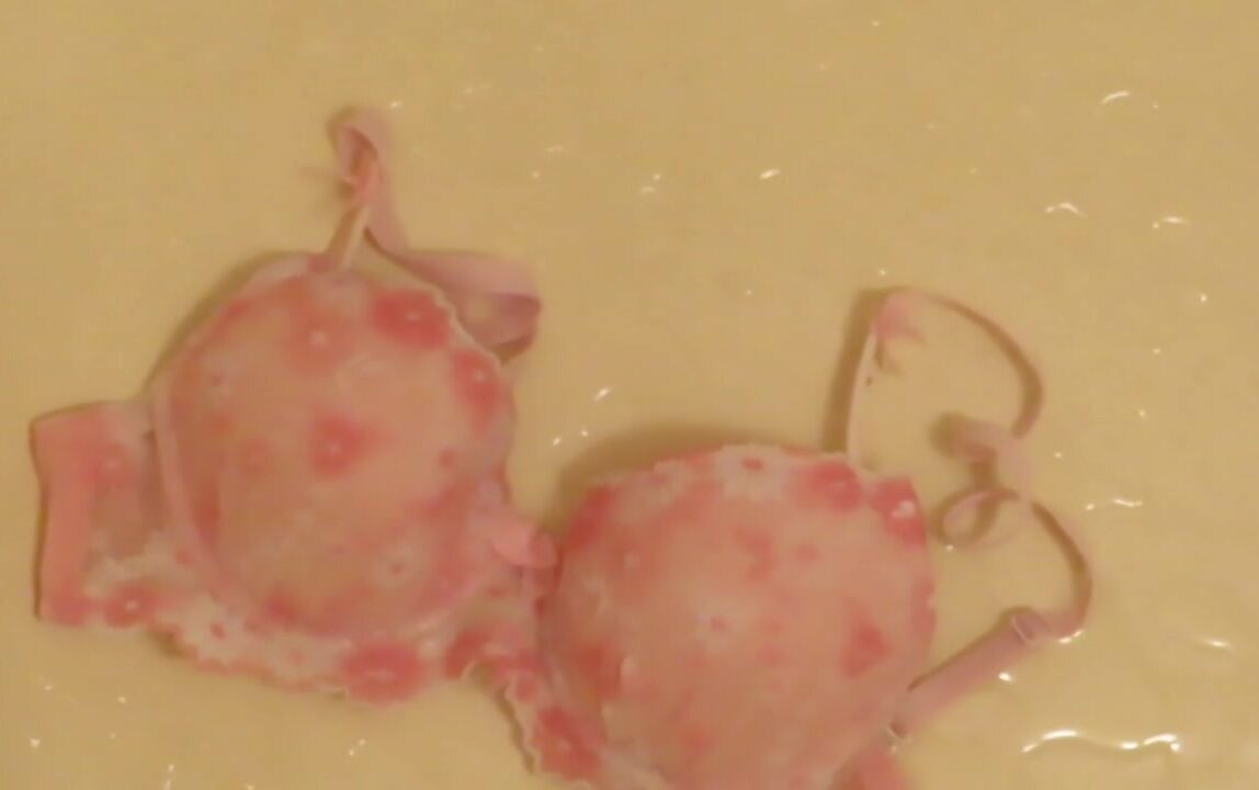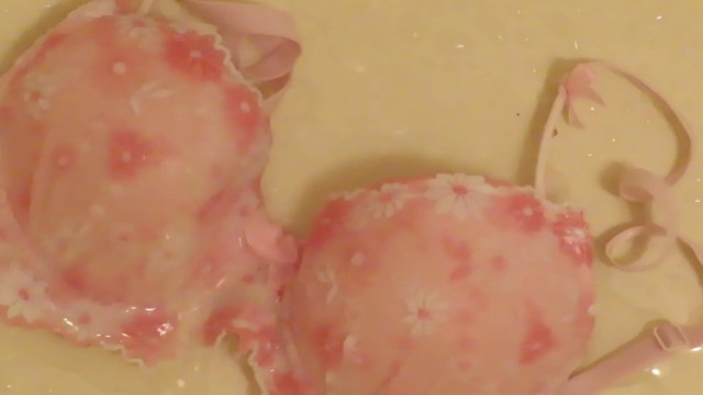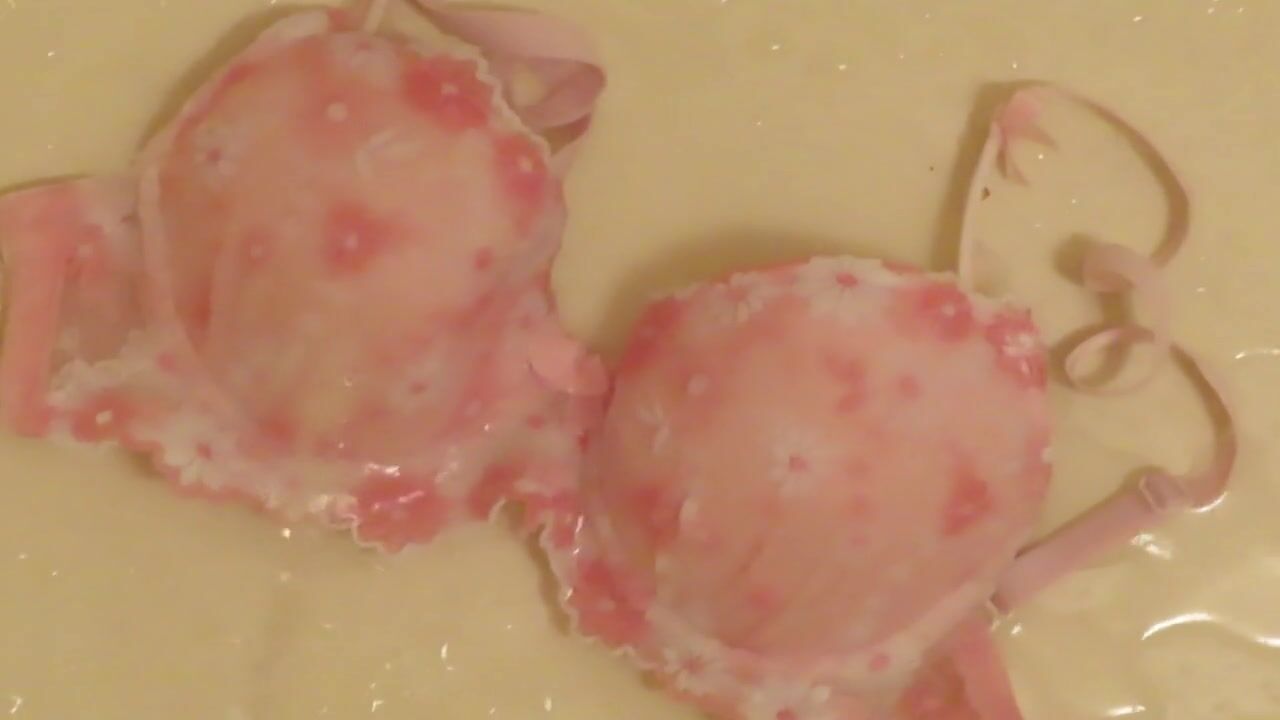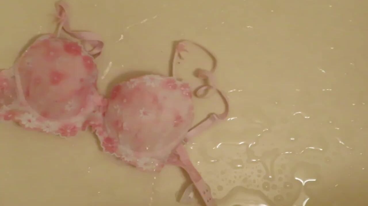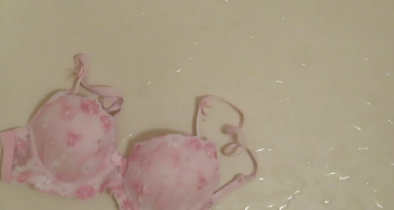 Piss on Pink Brassiere in Bathroom !! ピンクのブラに小便ぶっかけ!!