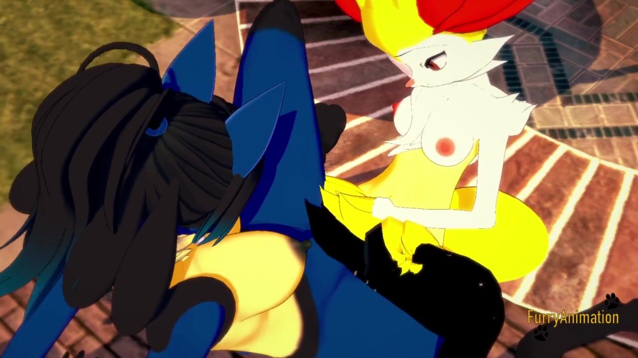 Pokemon Yuri Hentai - Braixen and Lucario make Scissors