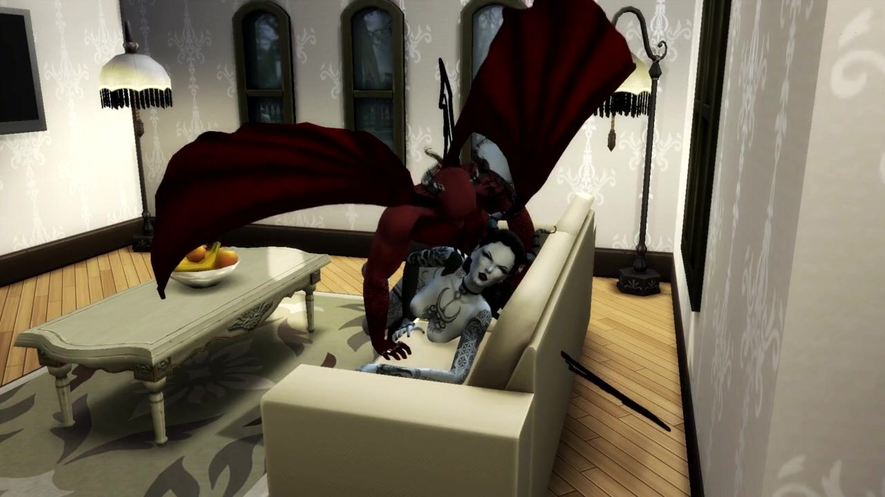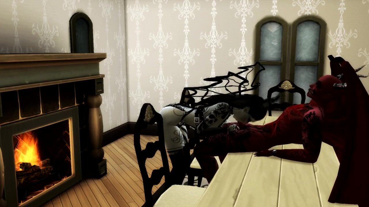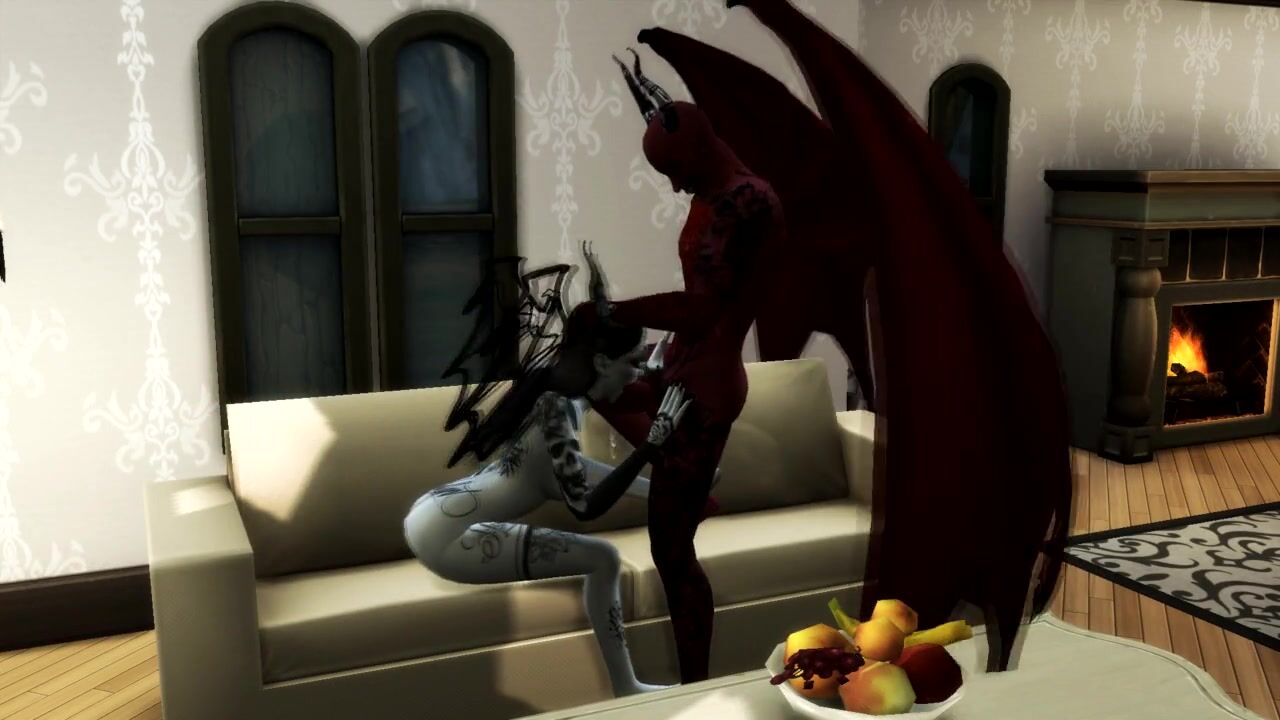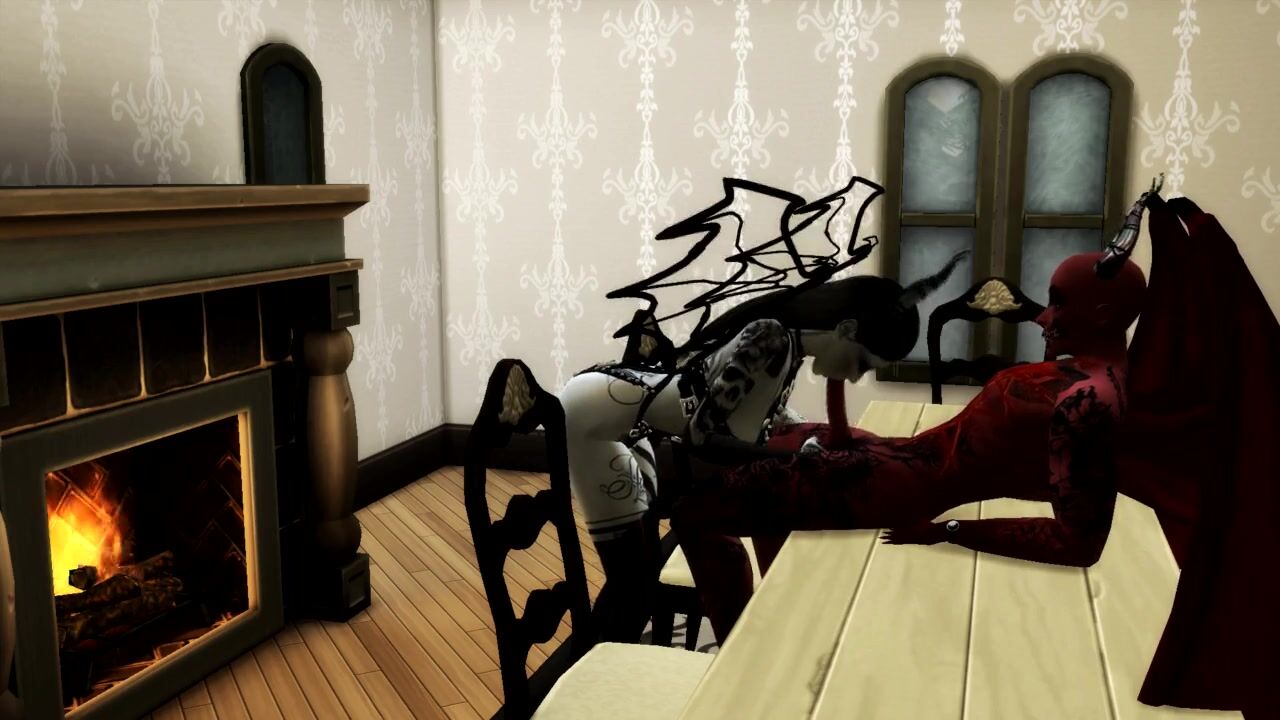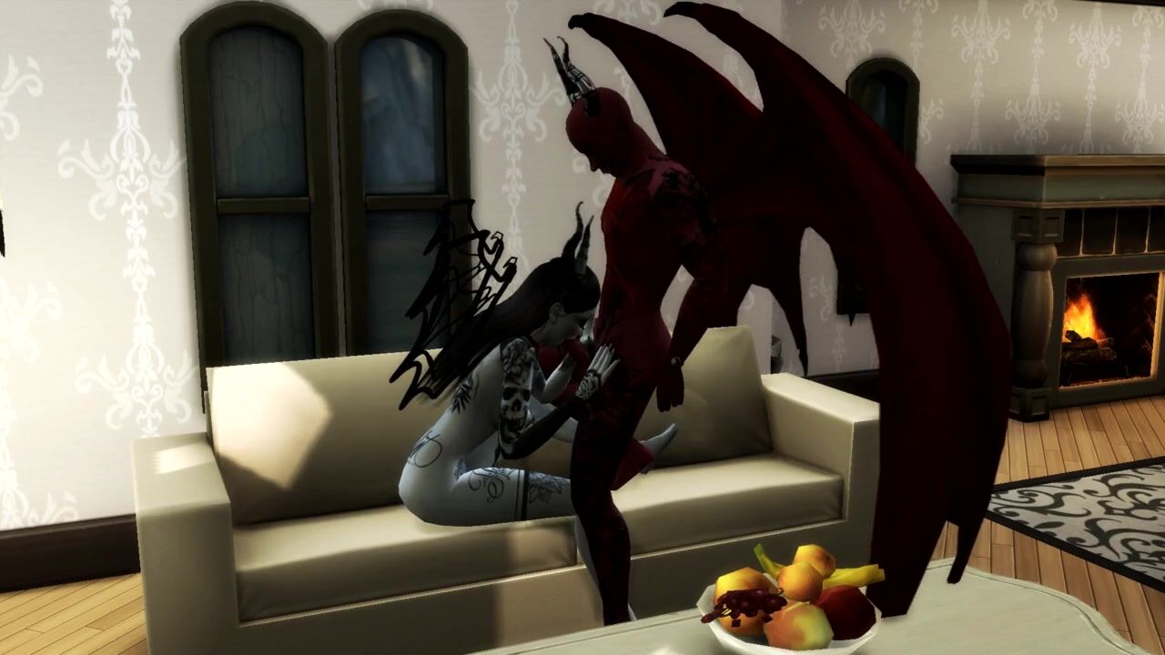 Queen of Pain SUCKS SATAN'S COCK AND GETS a CREAMPIE IN MOUTH