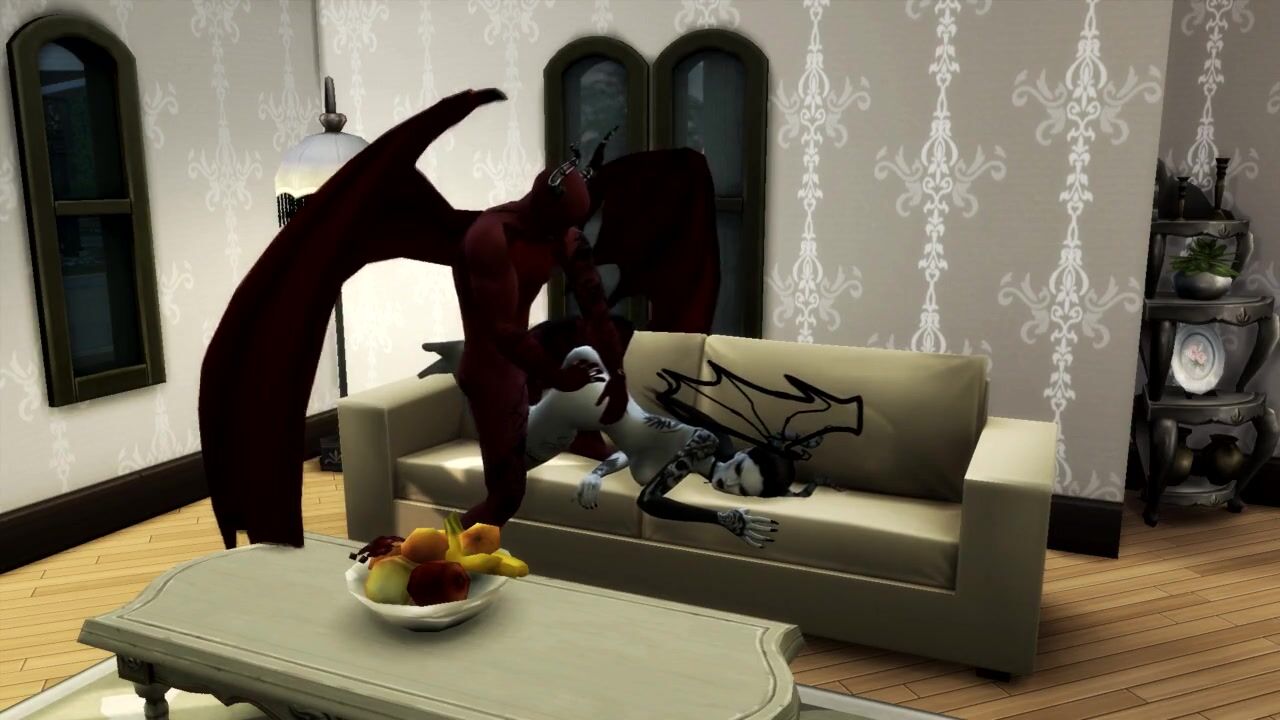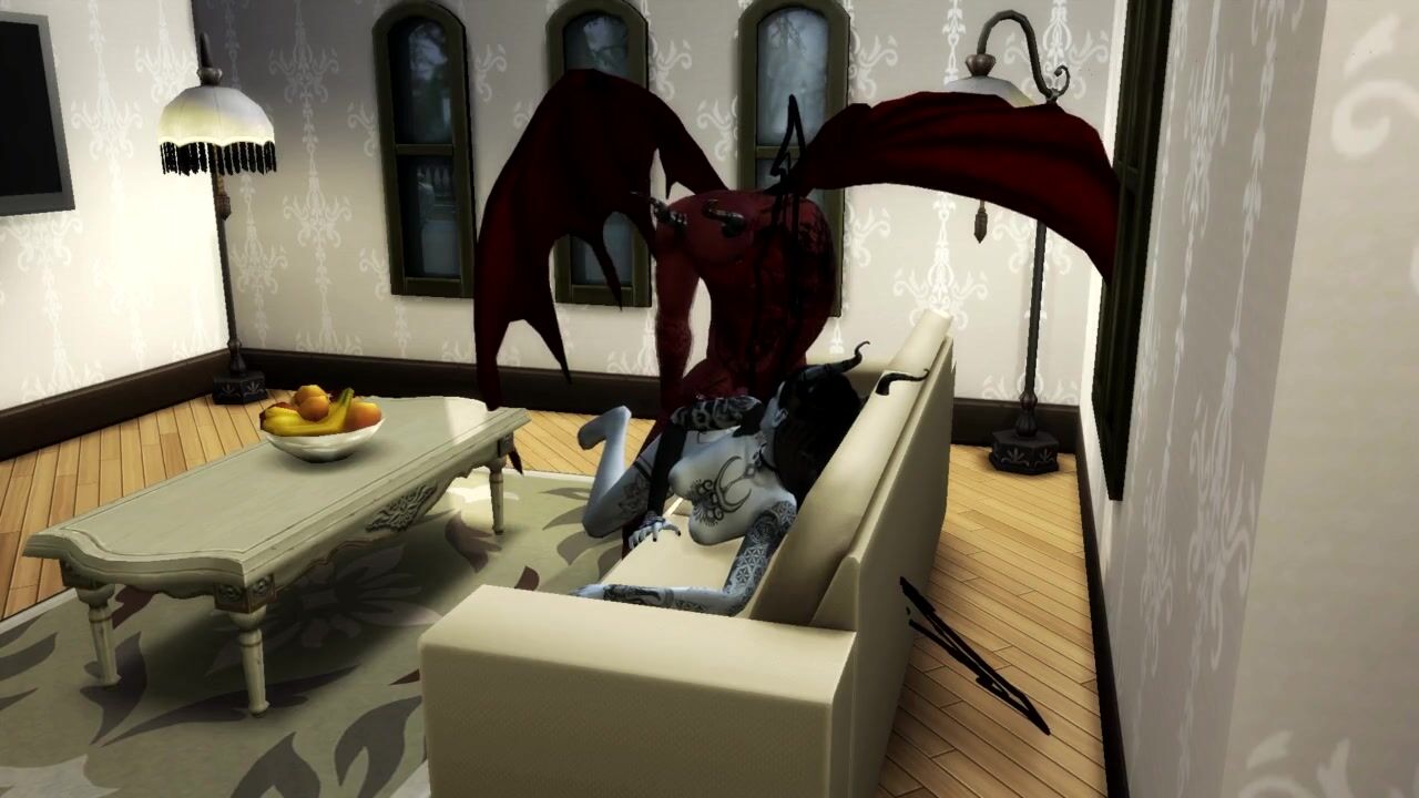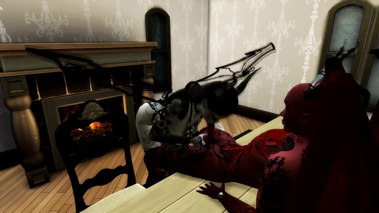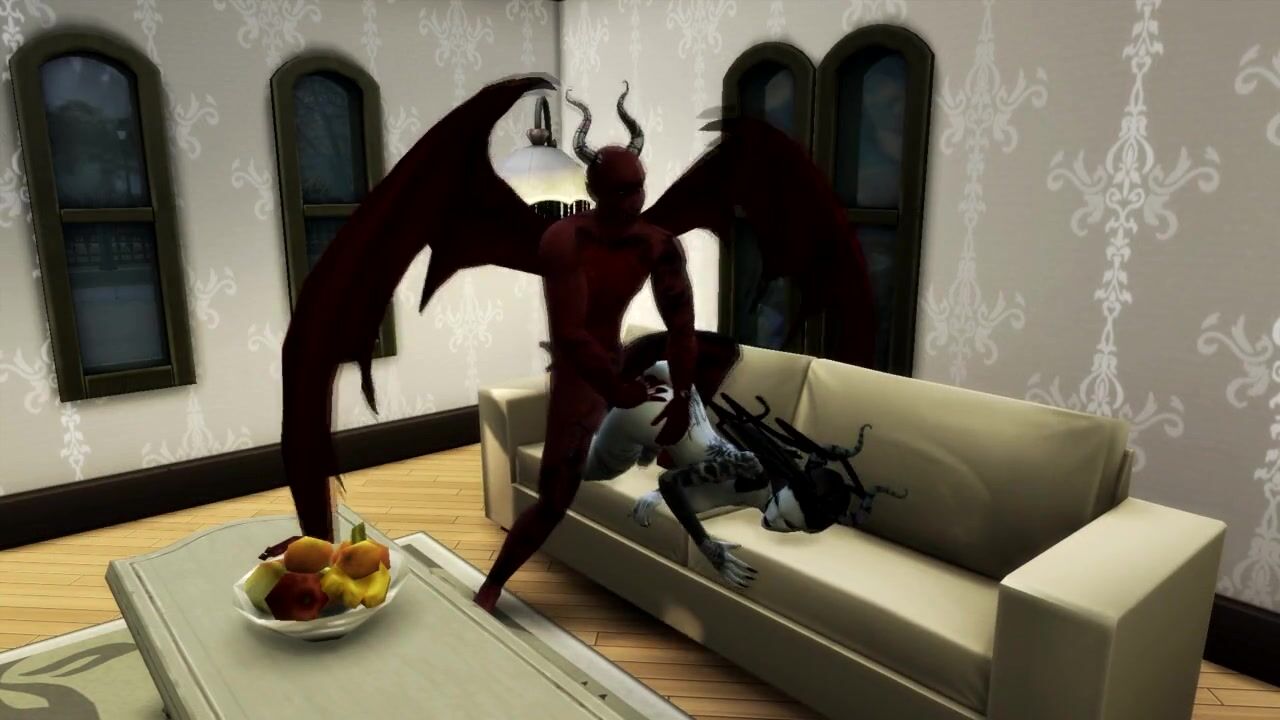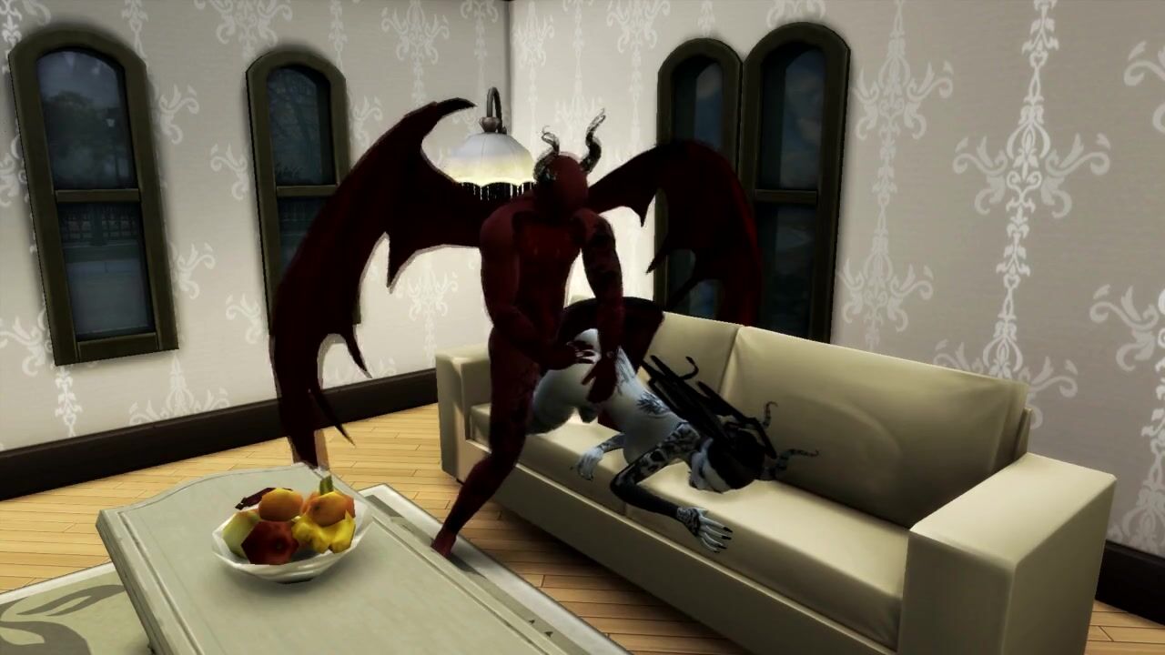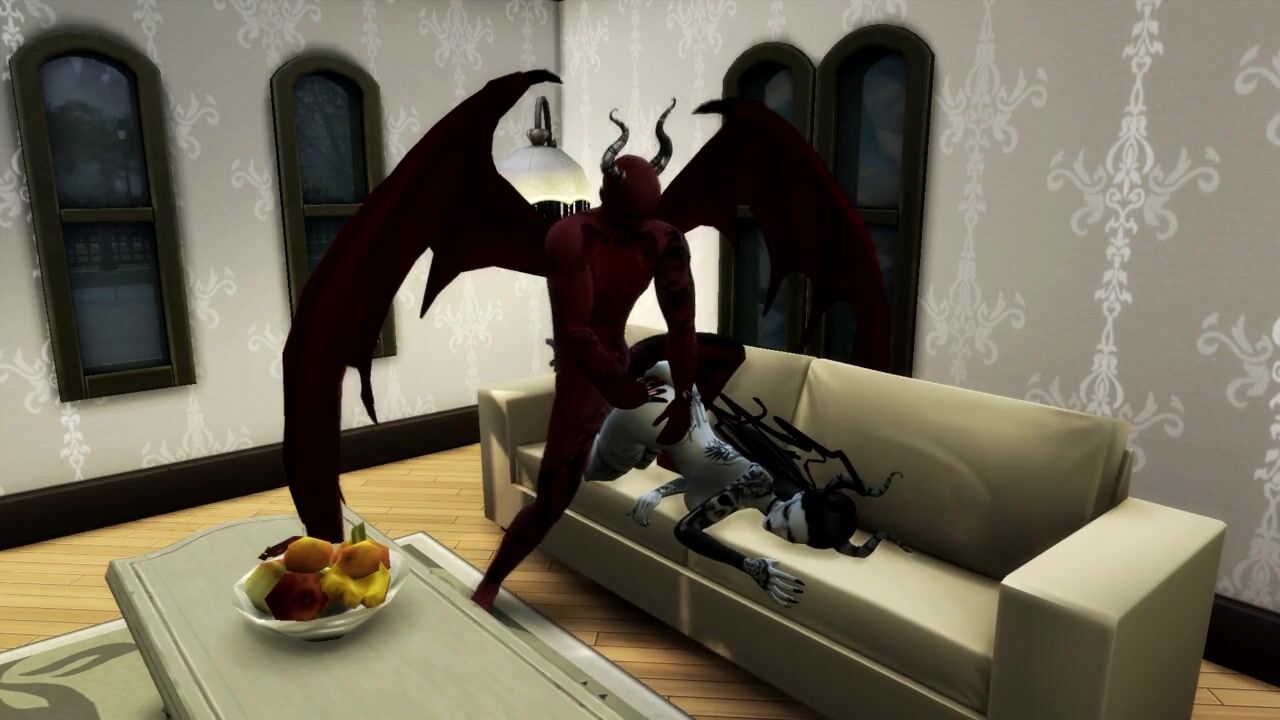 Queen of Pain SUCKS SATAN'S COCK AND GETS a CREAMPIE IN MOUTH