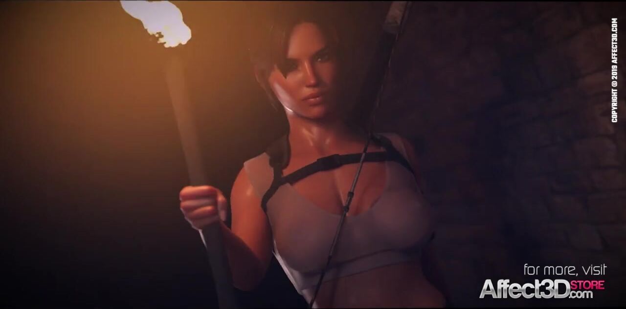 Raider Lara having threesome in an ancient tomb in a 3D animation