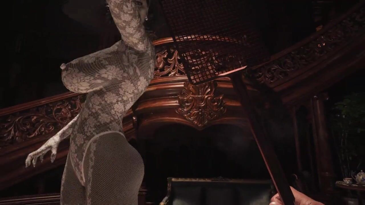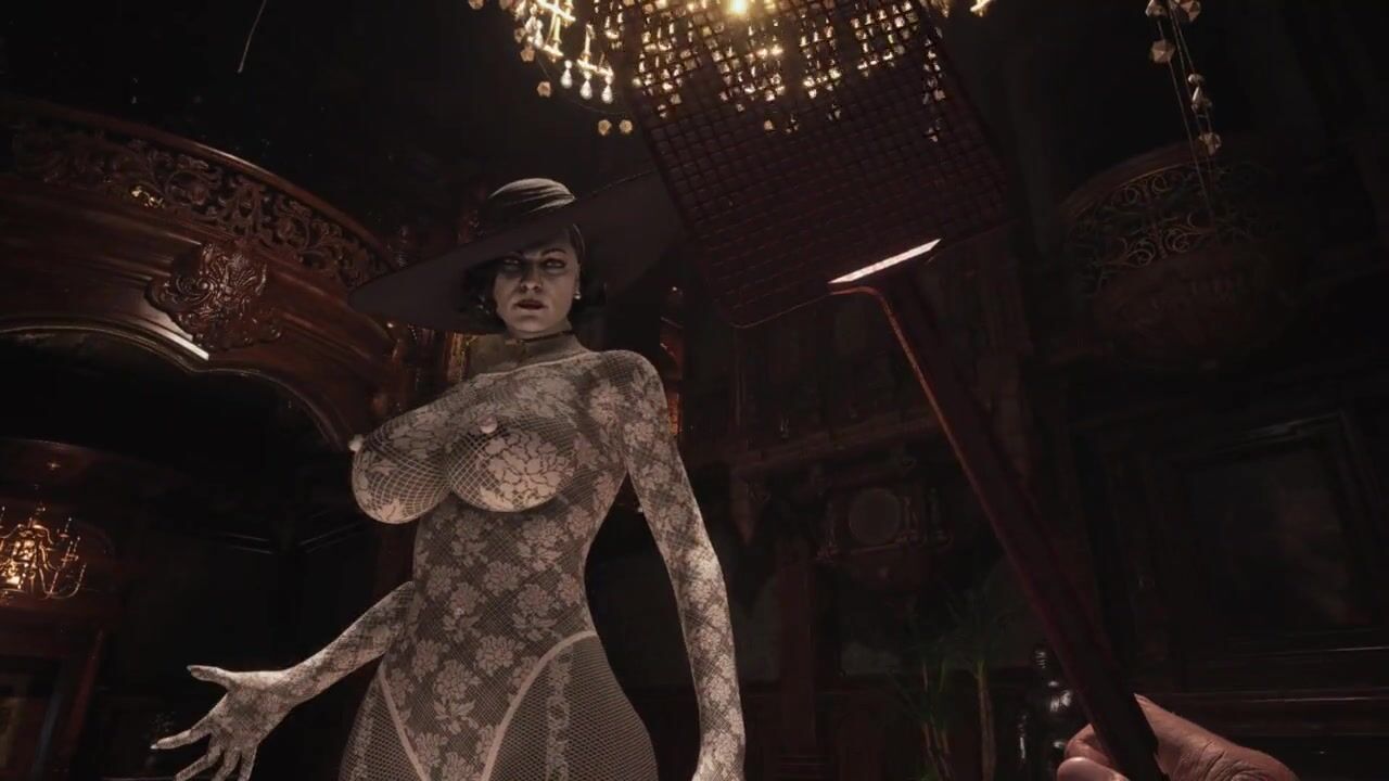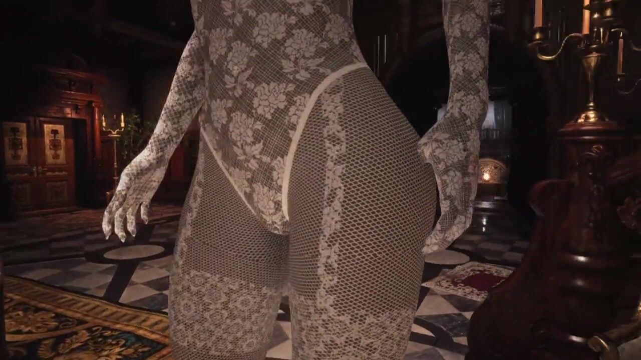 Resident Evil Village Lady Dimitrescu BDSM White Lace Body Stocking - Spanking - Extreme Jiggle