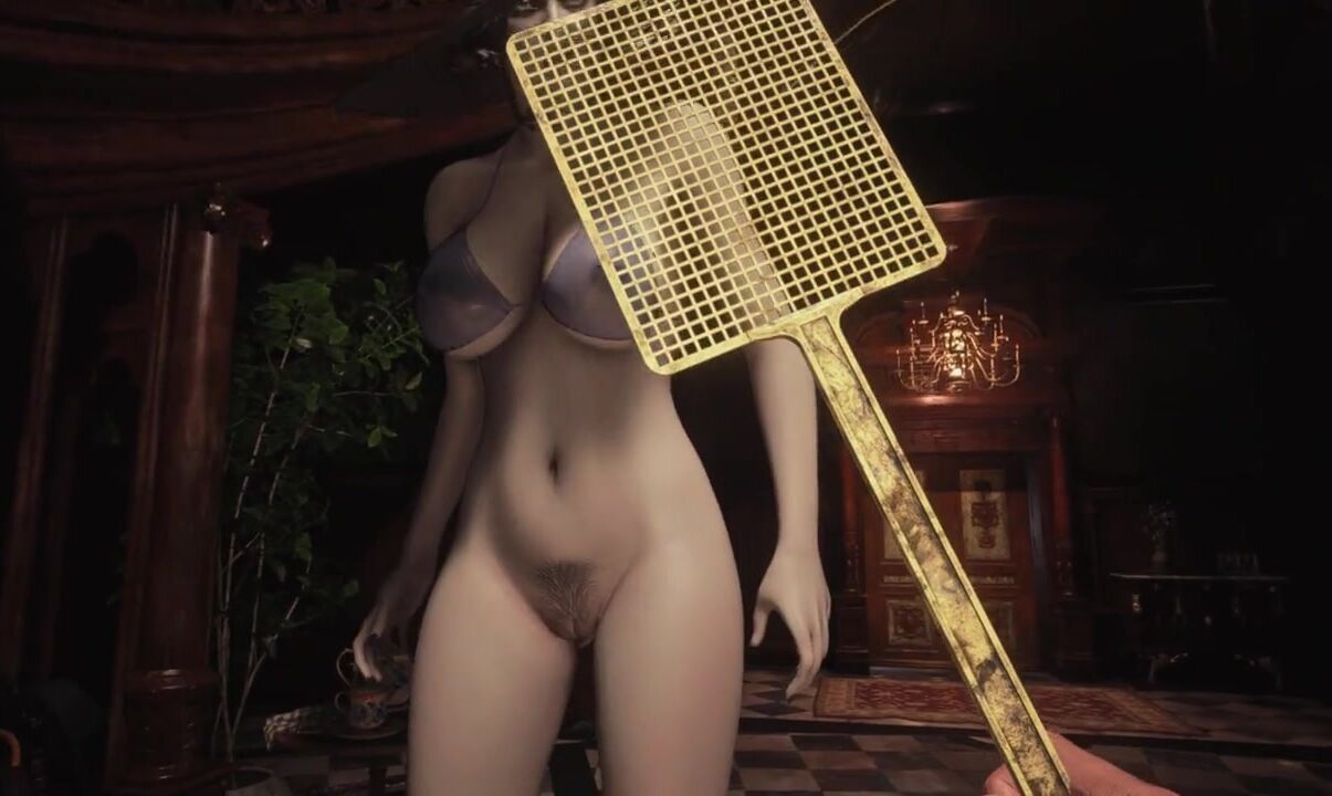 Resident Evil Village Lady Dimitrescu see through Blue Bikini Bottomless - Bushy Pussy Spanking Art