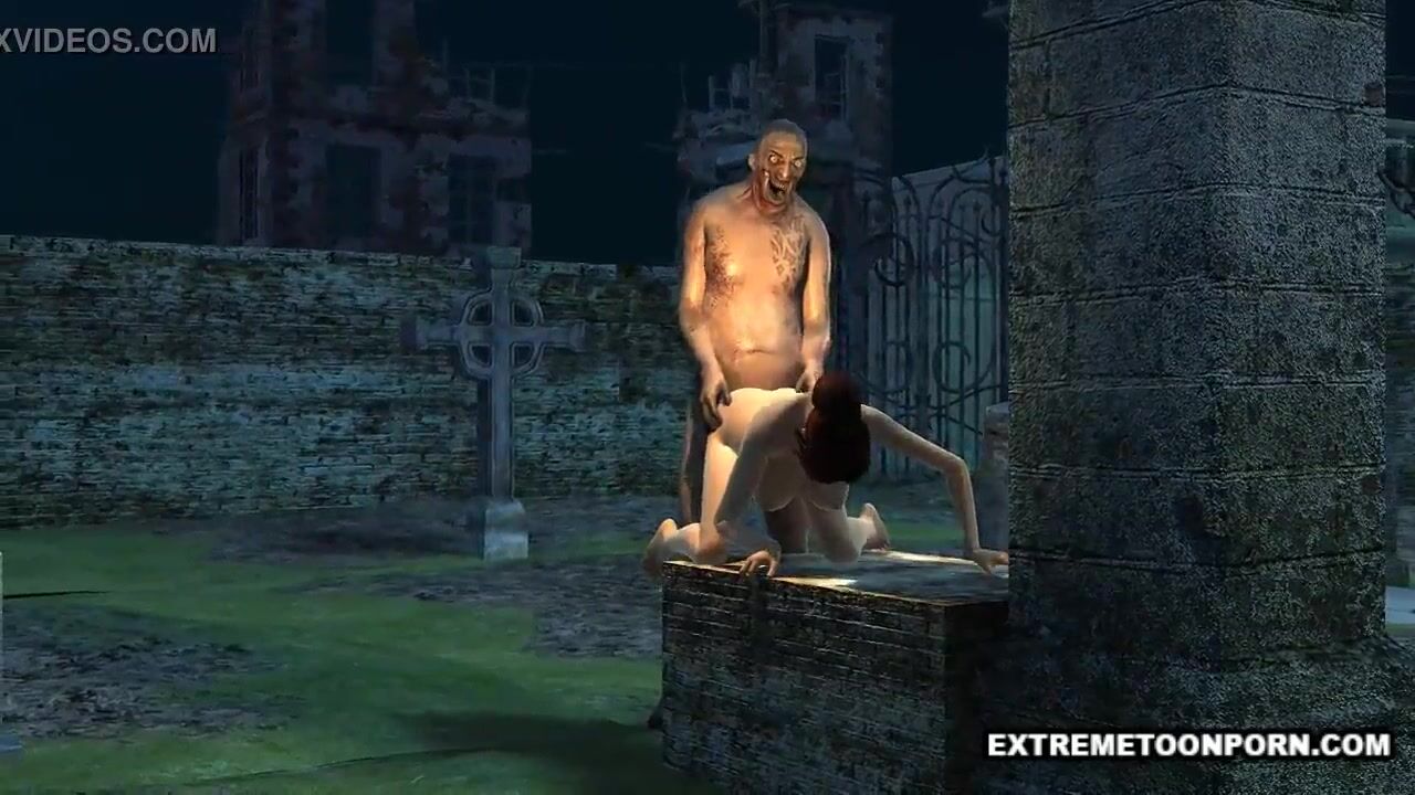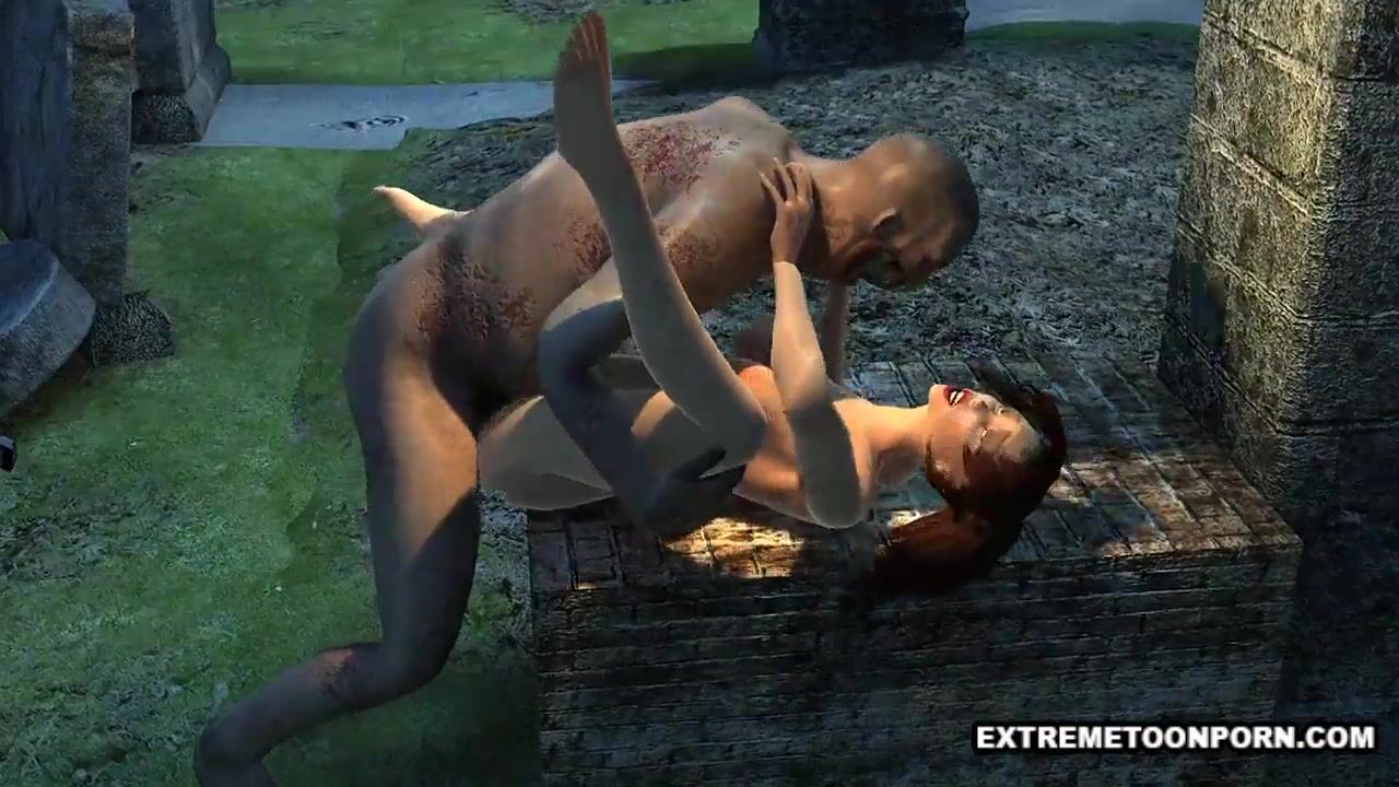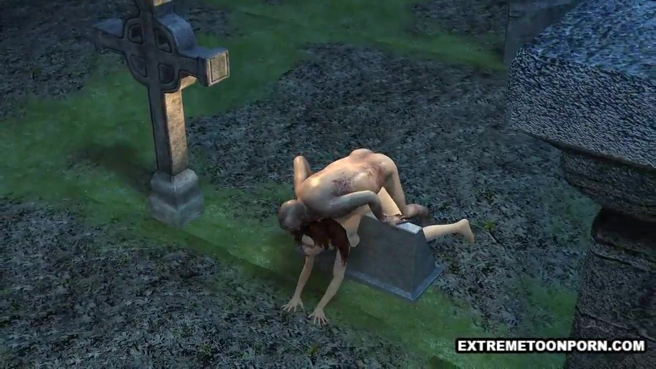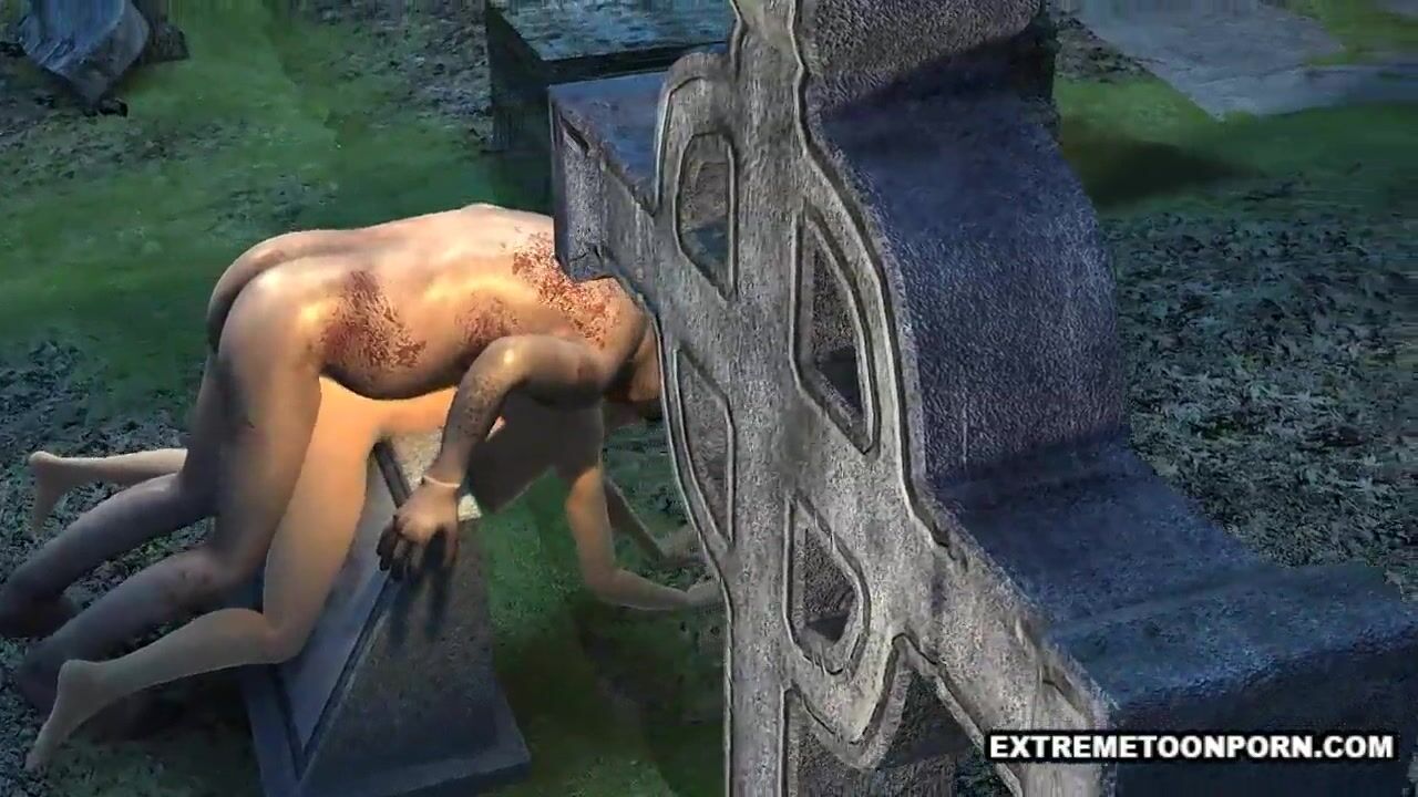 Sexy 3D Babe Fucked in a Graveyard by a Zombie