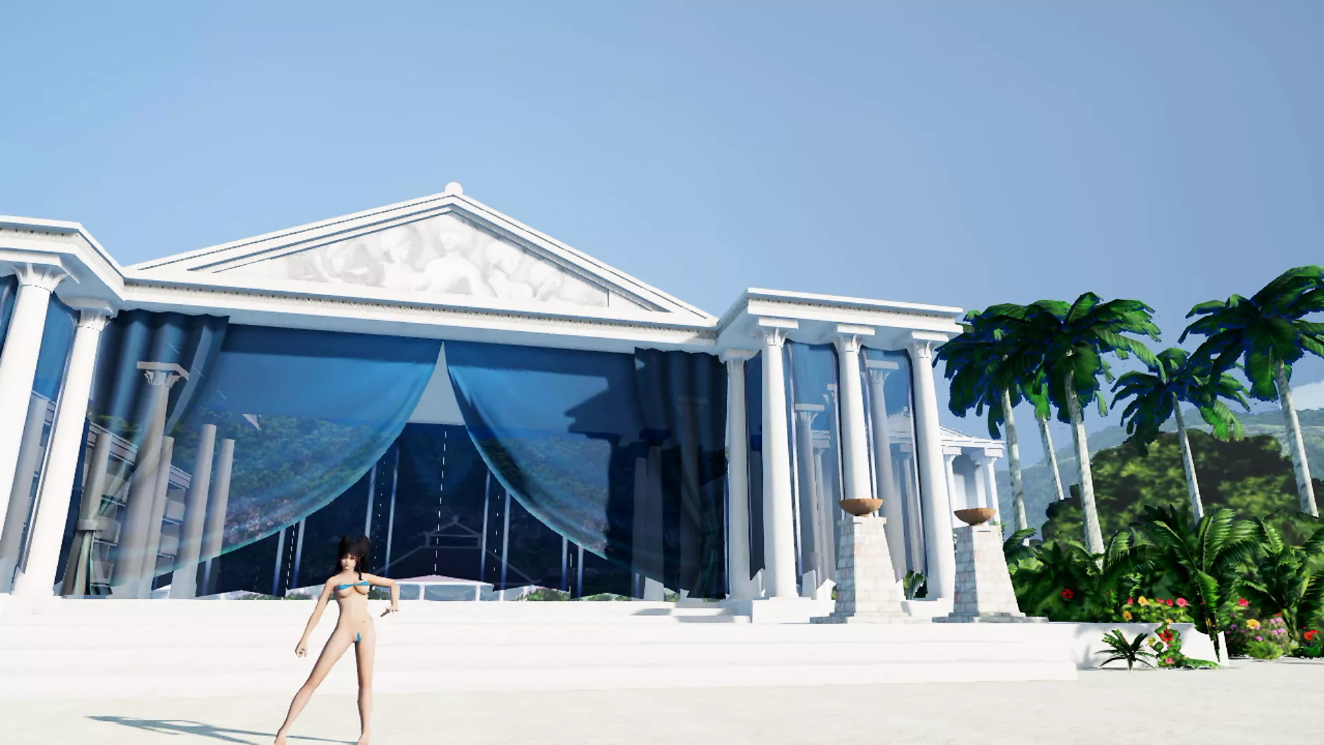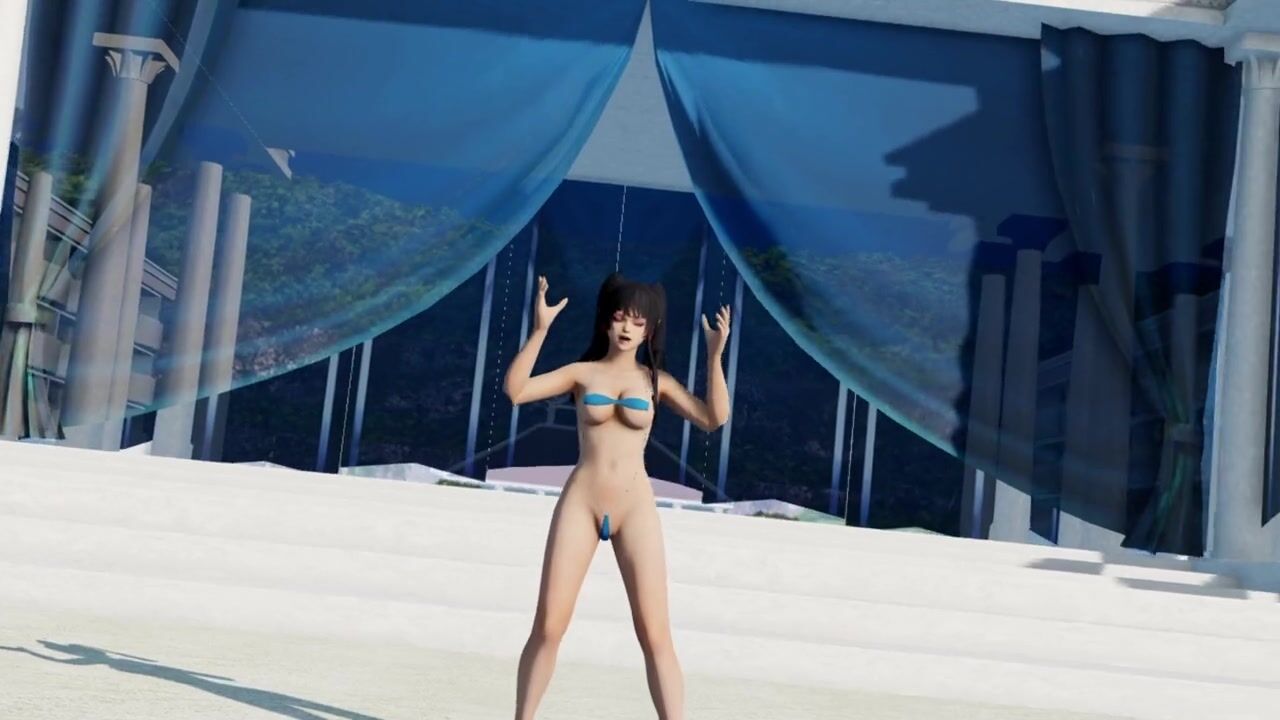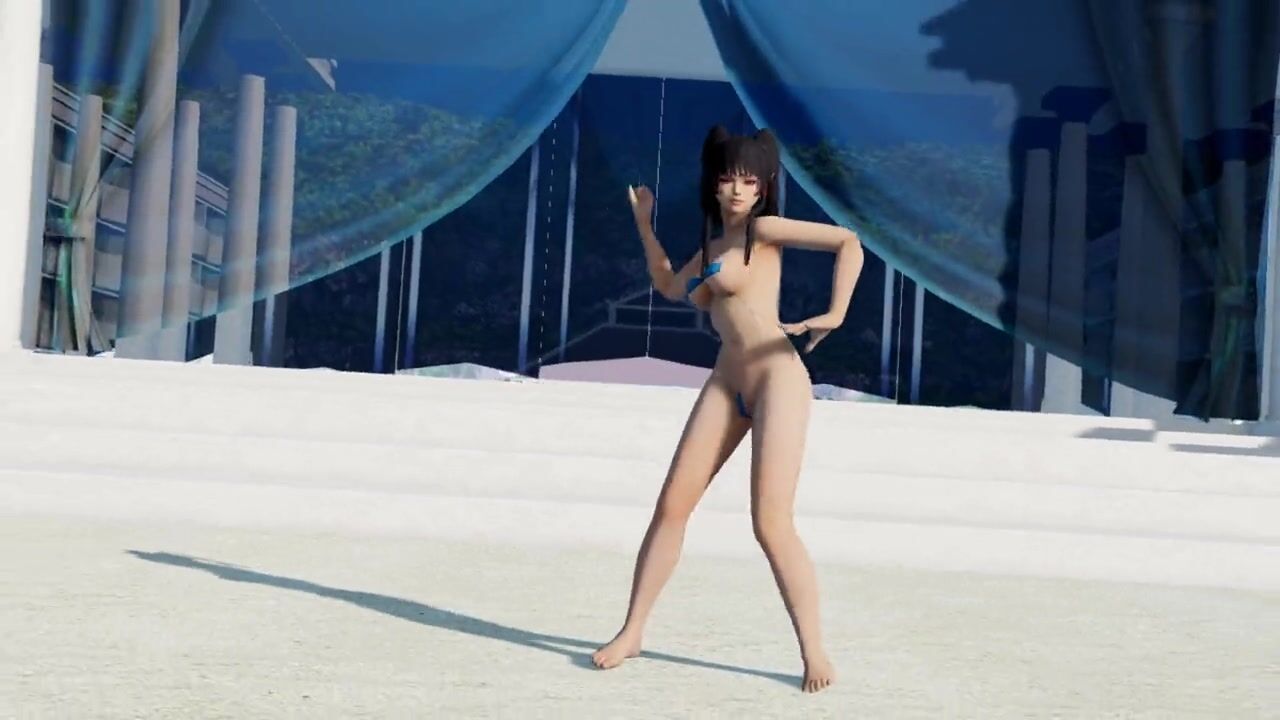Sexy hot beauty dancing in a small bikini on the beach