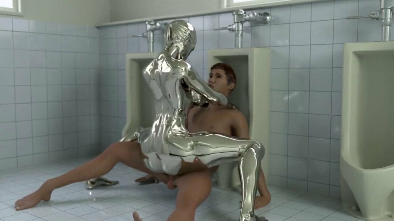 Silver alien girl rides a dick cowgirl in the bathroom
